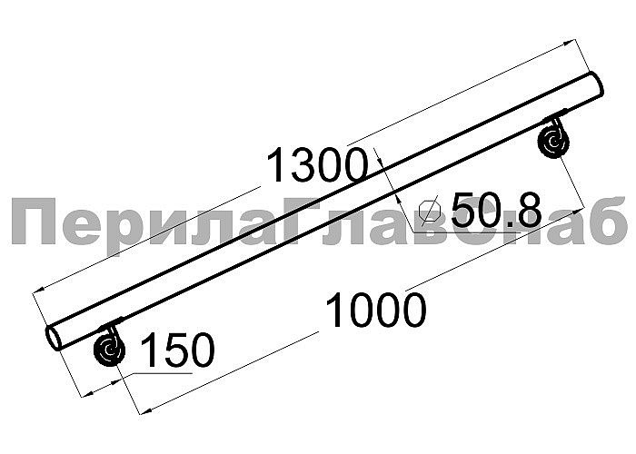 Готовый пристенный поручень с двумя держателями, длина 1300мм (aisi 304)