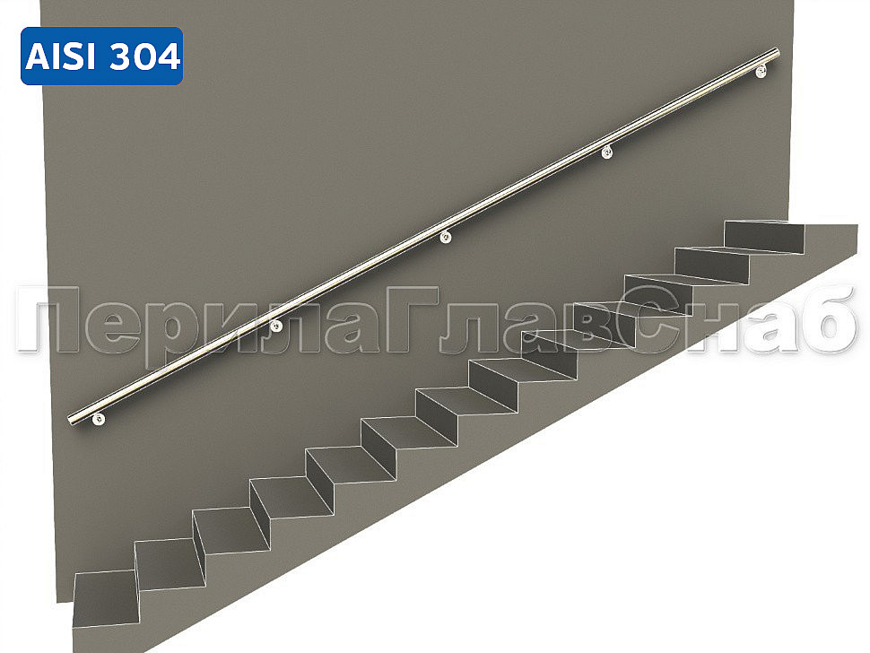 Готовый пристенный поручень с 4 держателями, длина 3300 мм (AISI 304) k730-33 купить в Екатеринбурге