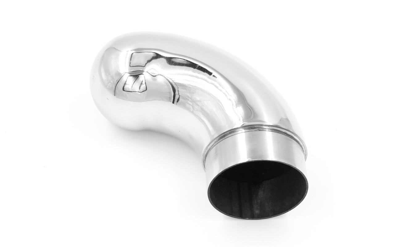 Отвод оконечный литой под трубу диаметром 50.8 мм, с круглой заглушкой. Деталь полированная 600Grit, литая, марка стали - AISI 304