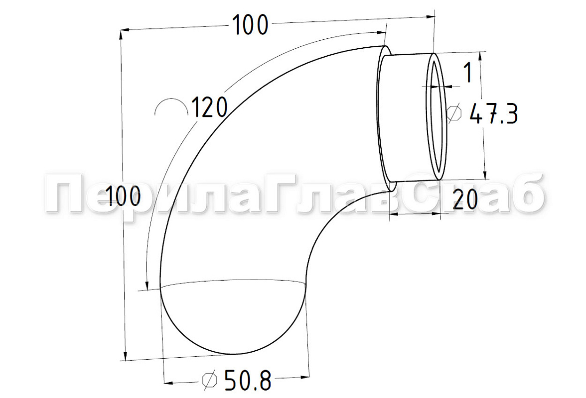 Отвод поручня под сварку Ø50.8х1.5 мм, 400 Grit, (AISI 304) k021 купить в Екатеринбурге