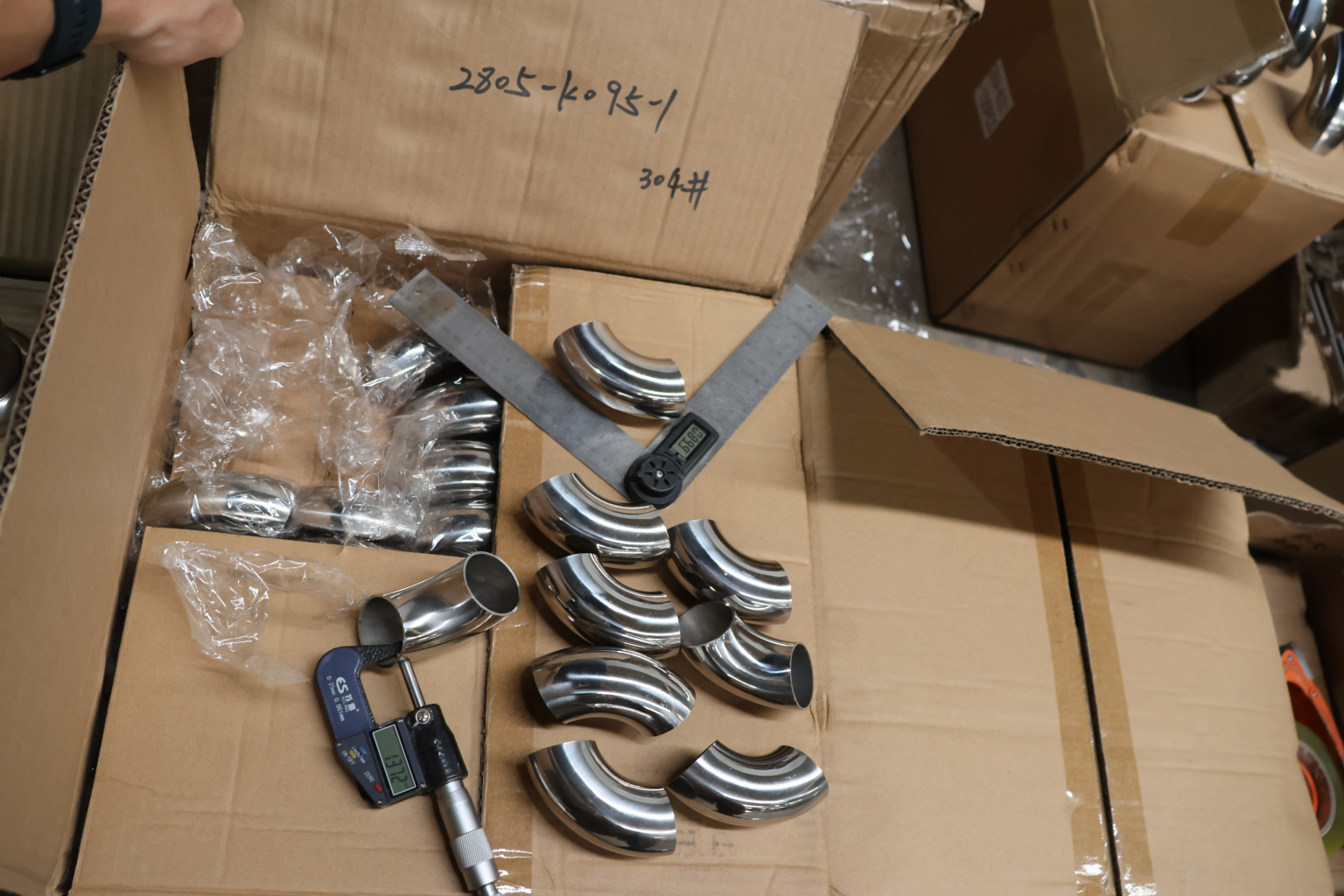 Отвод для трубы (длина дуги 150 мм) диаметром 38.1х1.5 мм, 400 Grit, полированный. Марка стали - AISI 304.