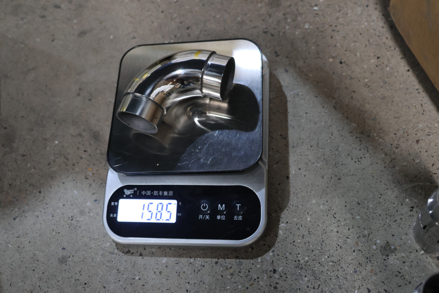 Отвод поручня под Ø42.4х1.5 мм, 90°, литой, полированный 600 Grit, с двумя установочными кольцами (aisi 316) k383-5