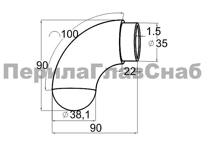 Отвод поручня под сварку Ø38.1х1.45 мм, 400 Grit, (AISI 304) k095 купить в Екатеринбурге