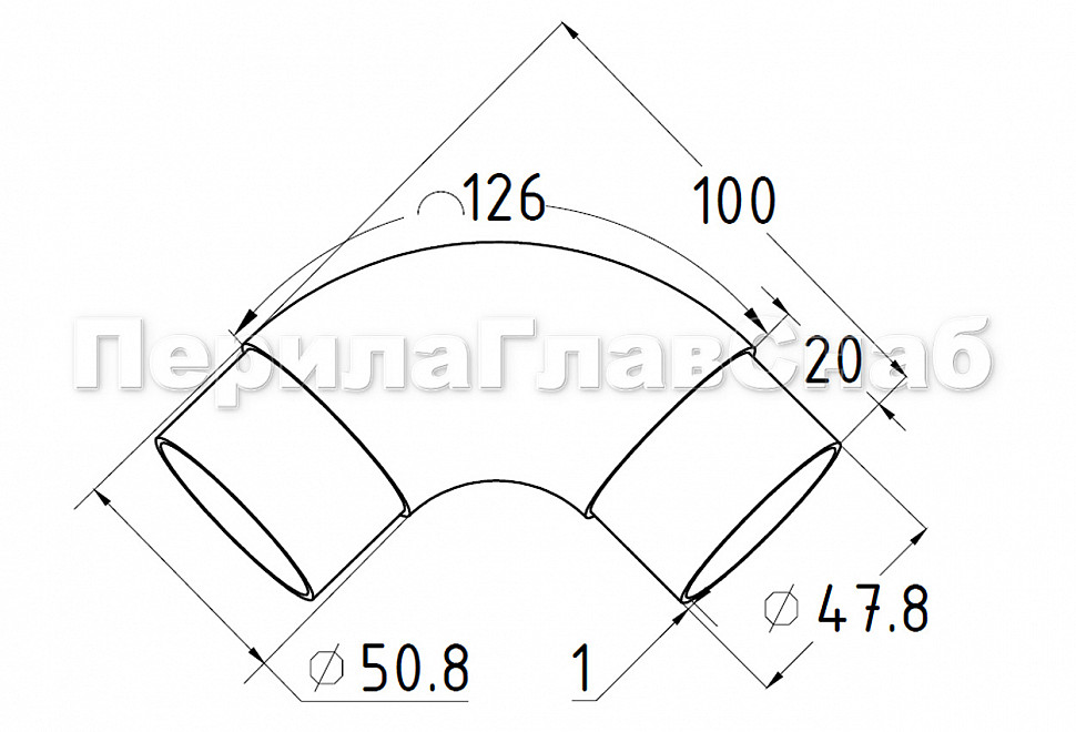 Отвод поручня под сварку под Ø50.8 мм, 400 Grit, (AISI 201) k021-8 купить в Екатеринбурге