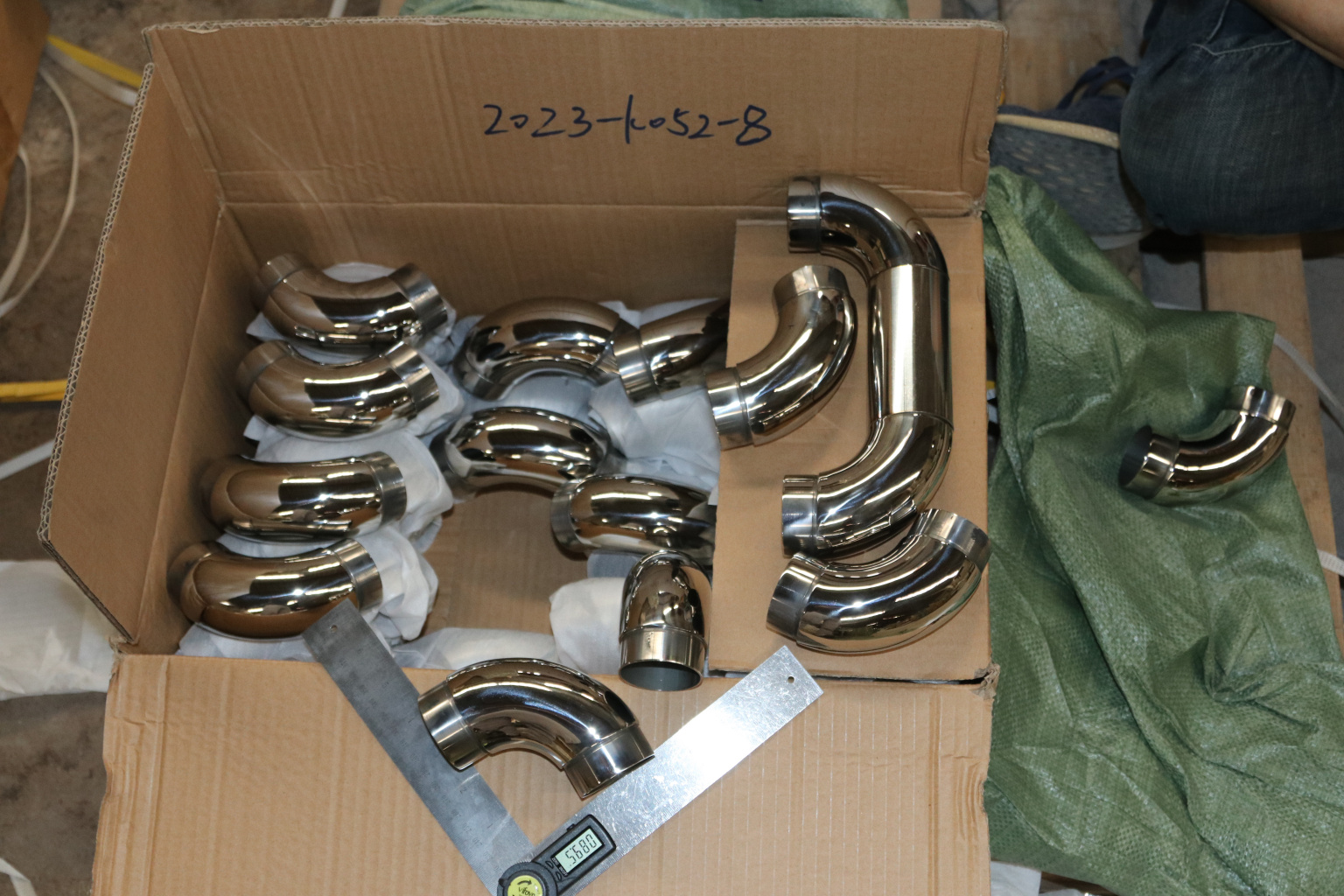 Отвод под поручень с двумя установочными кольцами диаметром 50.8х125. Деталь полированная 600Grit, литая. Марка стали - AISI 304