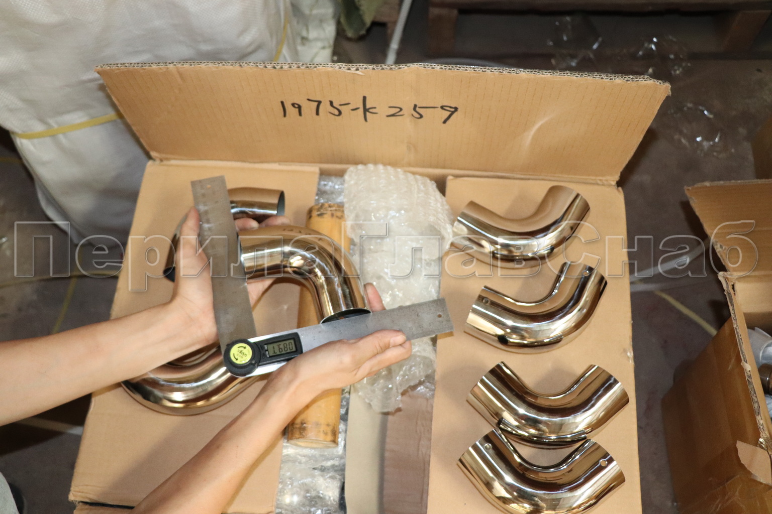 Поворот 90° для пластикового и деревянного поручня Ø50.8 мм. Деталь полированная, самосборная. Марка стали - AISI 304