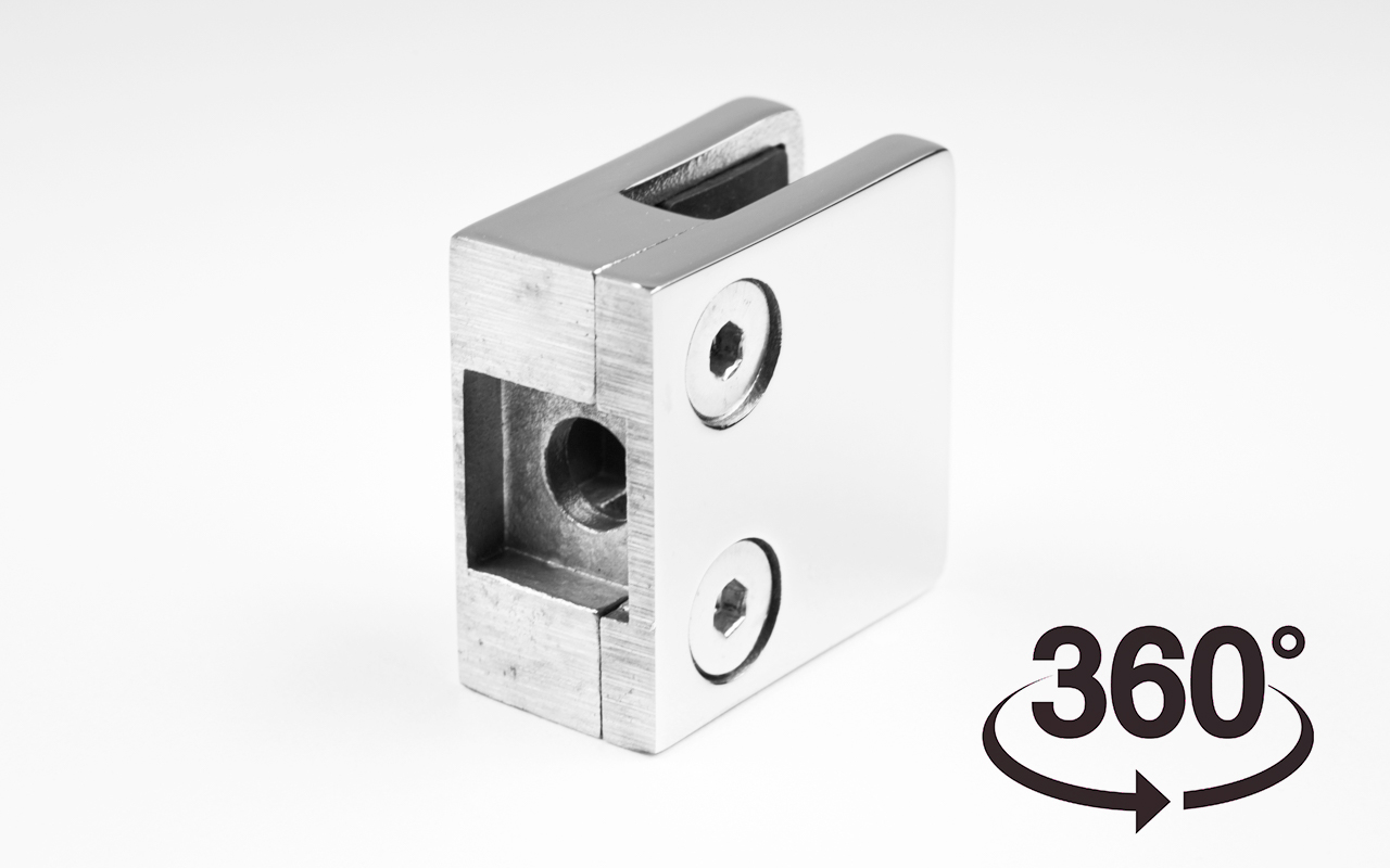 Стеклодержатель литой под стекло 8 мм (4+4 мм), под стойку Ø38.1 мм 40х22х49, полированный (AISI 304) k001-4 купить в Екатеринбурге
