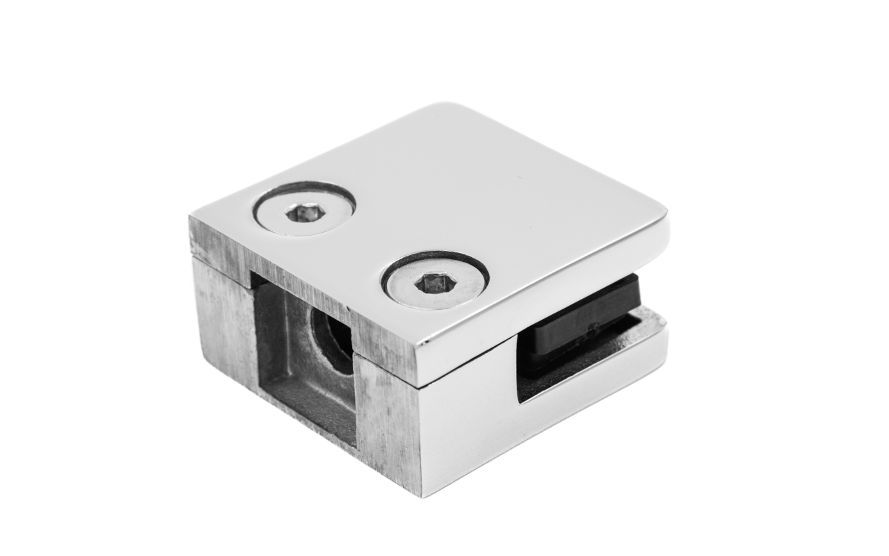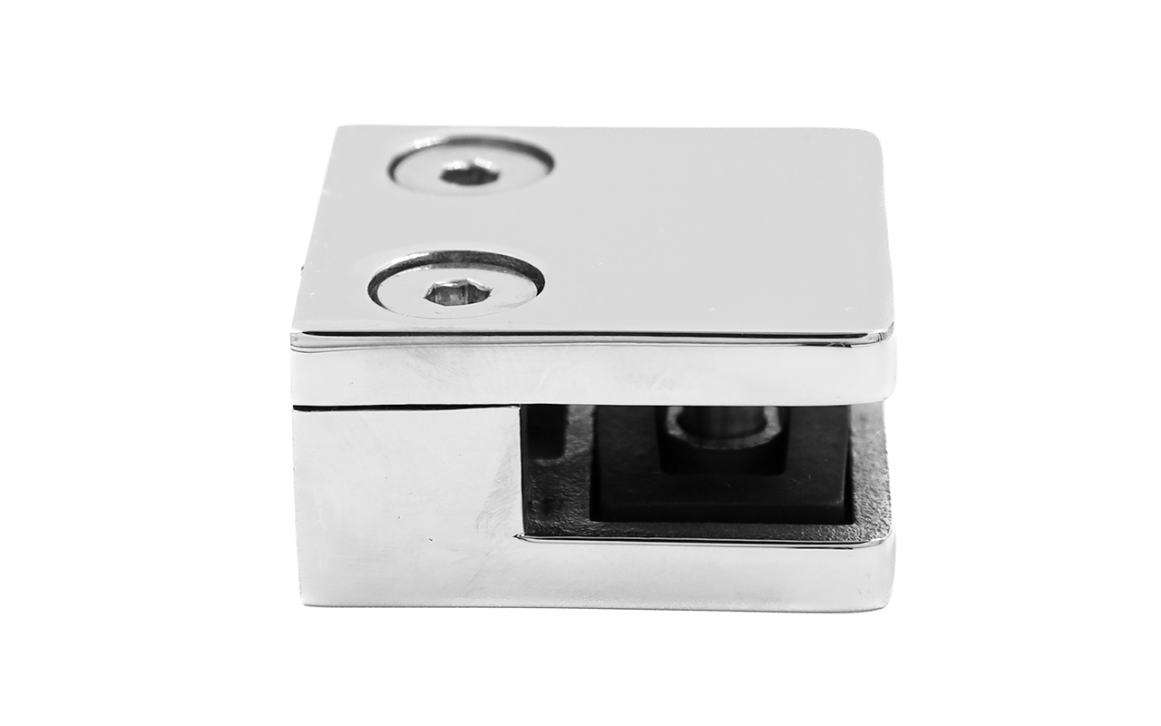 Стеклодержатель штампованный  под стекло 8 мм (4+4 мм), квадратный, под стойку Ø38.1 мм (40х24х48), полированный (AISI 304) k351 купить в Екатеринбурге