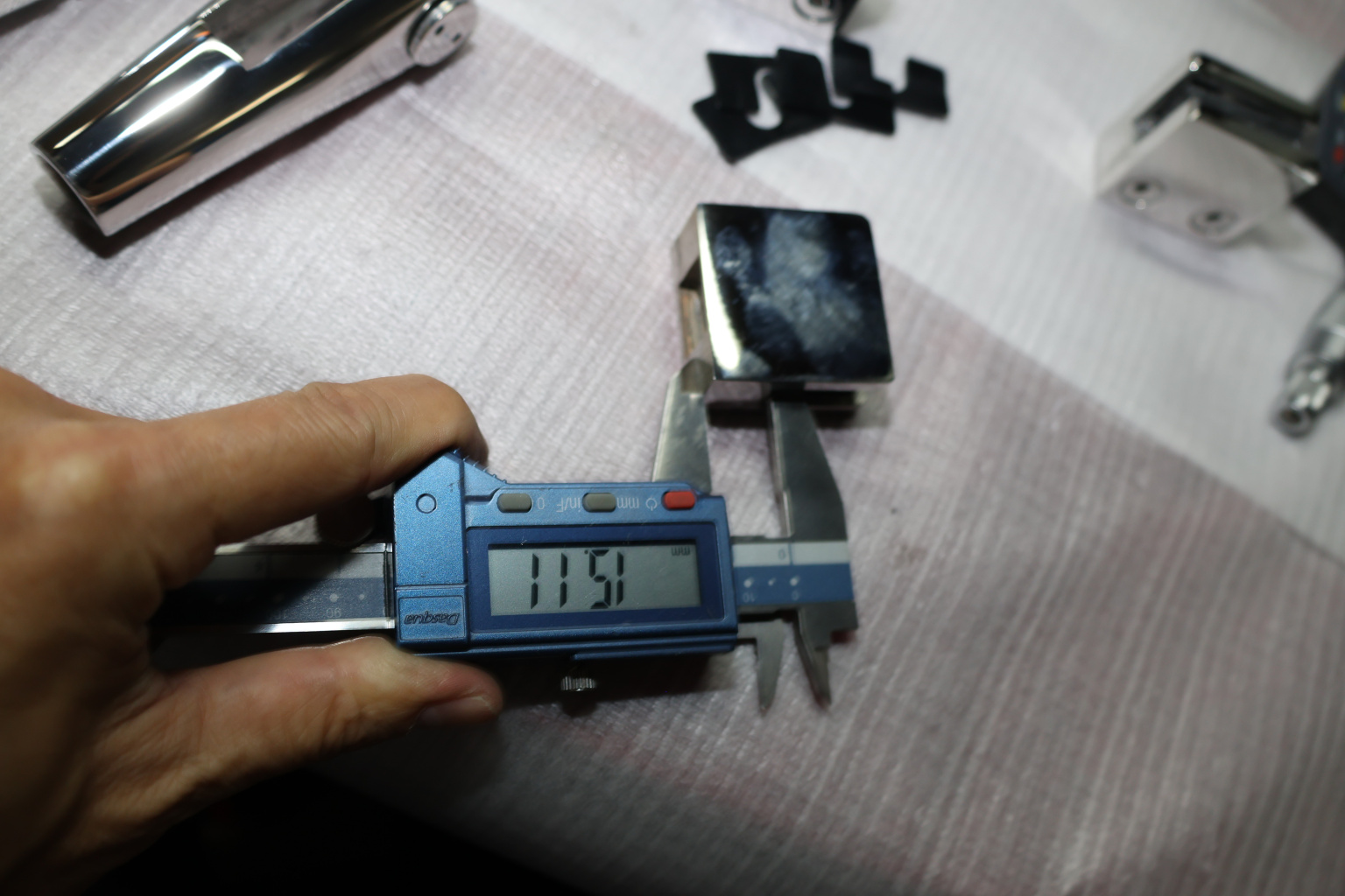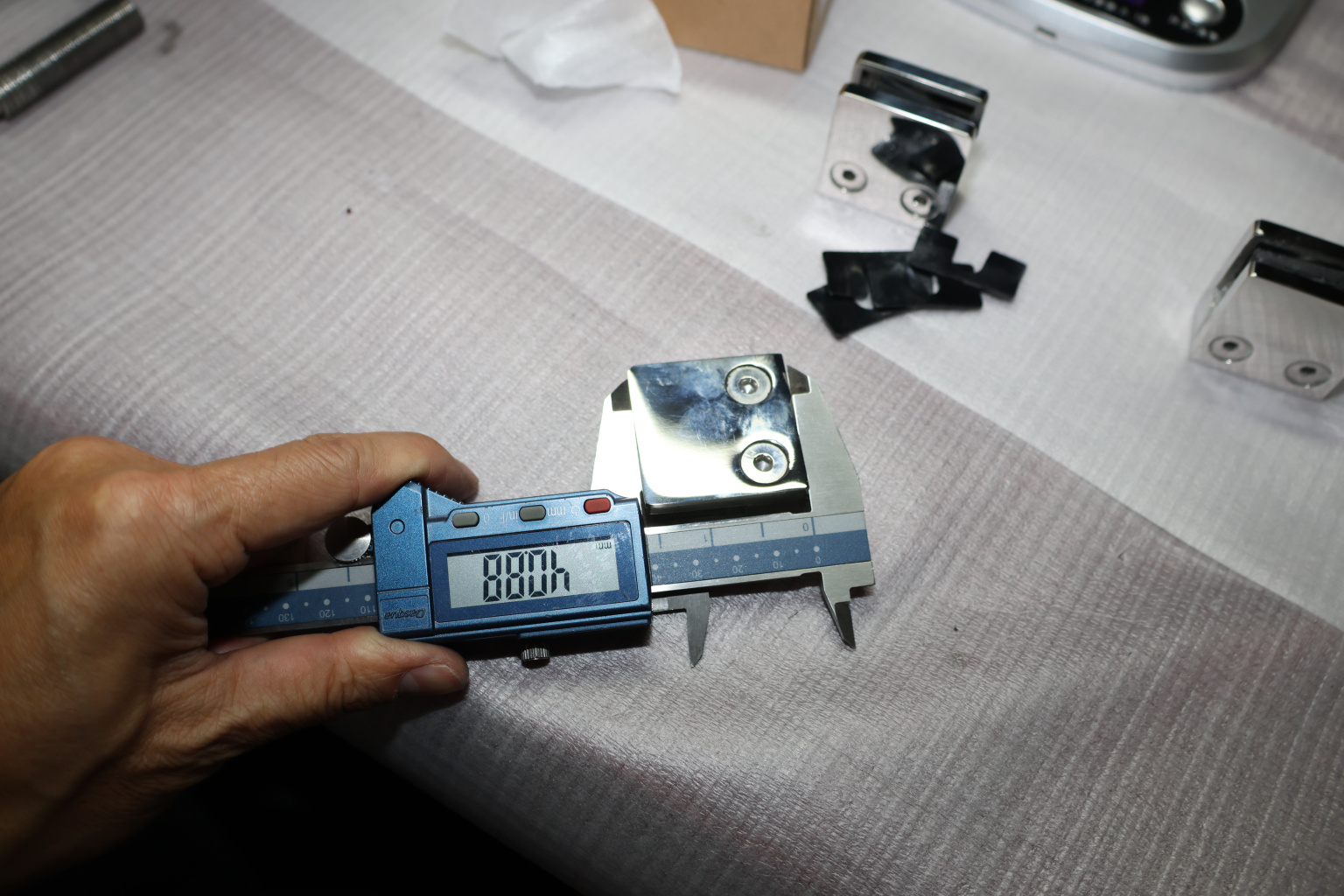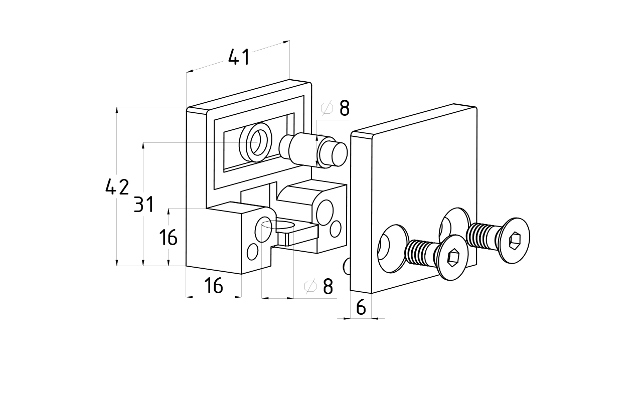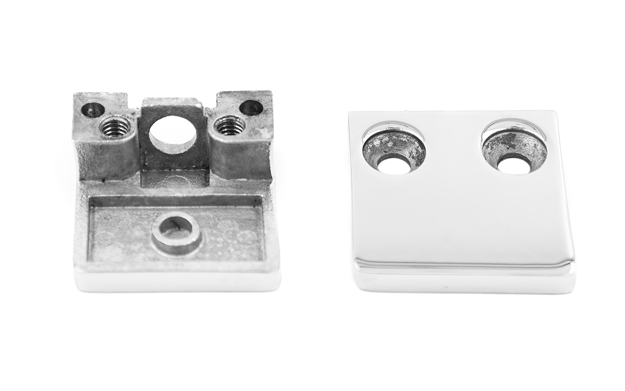 k003-10 стеклодержатель литой под стекло 8-10 мм, 4+4 мм. На плоскость 41х22х42, полированный. Марка стали -  AISI 304