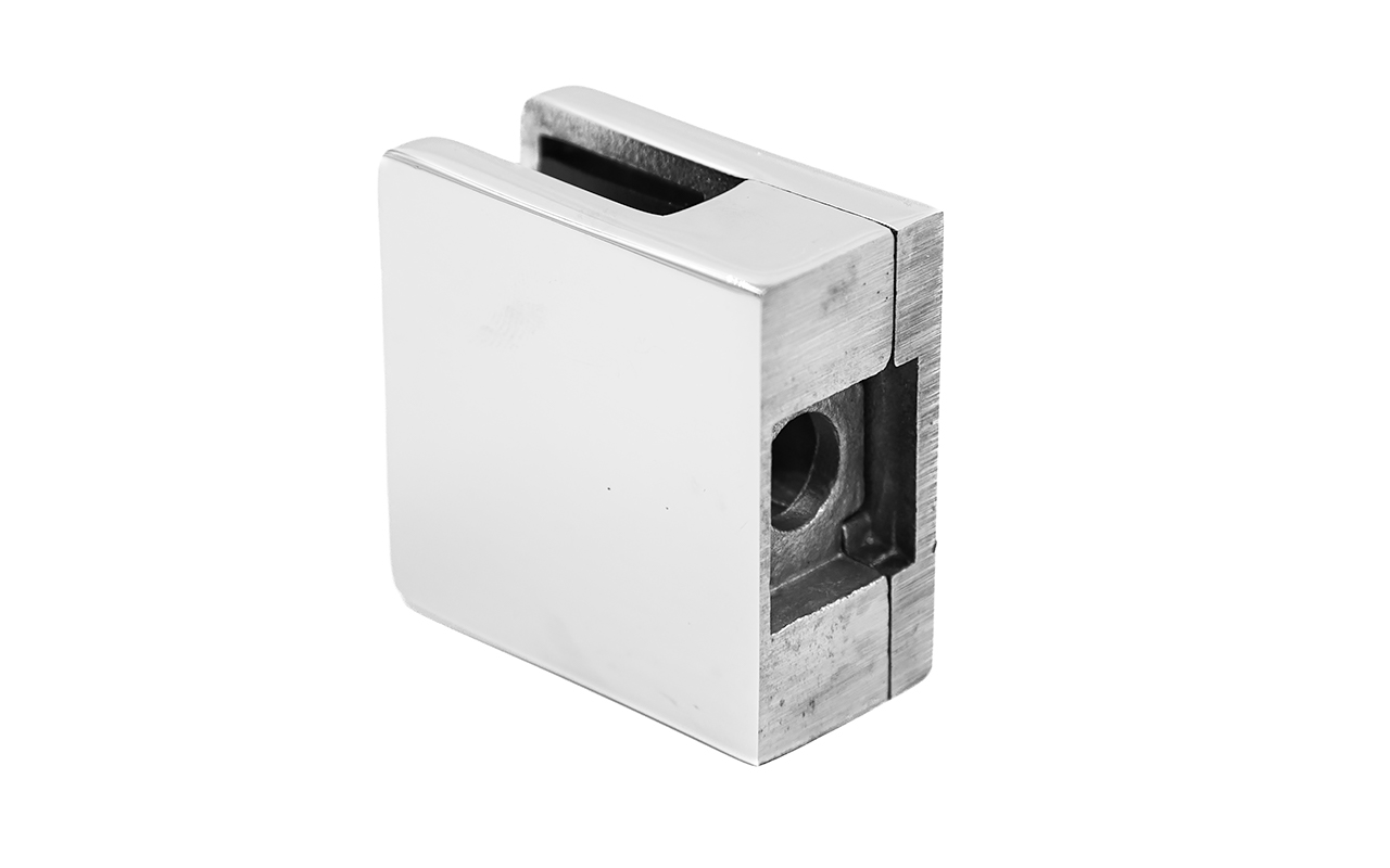 Стеклодержатель литой под стекло 8 мм (4+4 мм), под стойку Ø38.1 мм 40х22х49, полированный (AISI 304) k001-4