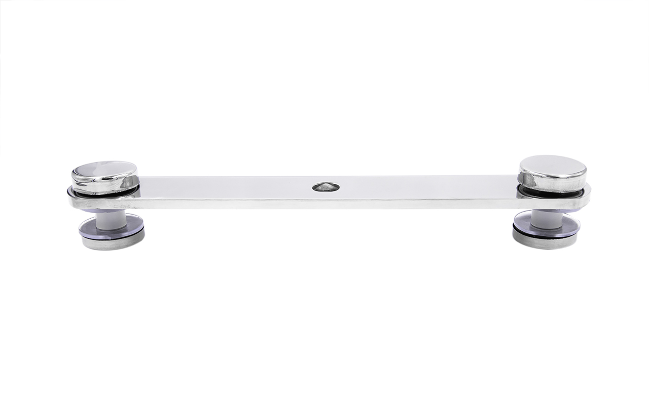 Стеклодержатель пластинчатый 3хМ8, по центрам 170х5 мм, полированный, шайбы 5 мм штамп., под стекло 6-12 мм, AISI 316 k023-8