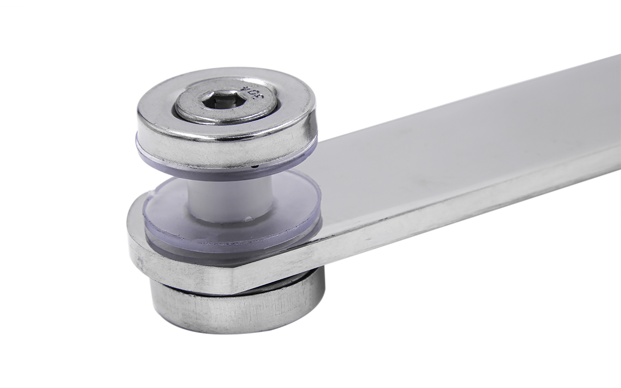 Стеклодержатель Ø50х10х18, шпилька М16х205 мм, для стекла 8-40 мм, AISI (201), с возможностью регулировки выноса до 65 мм, для торцевого крепления стекла, полированный, литой k277-3 купить в Екатеринбурге