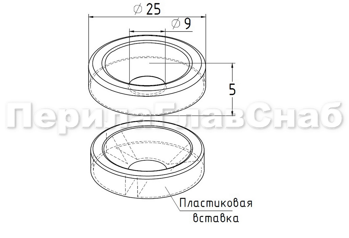 Заглушка под пластиковый (деревянный) поручень Ø49х0.4 мм полированная (AISI 304) k083