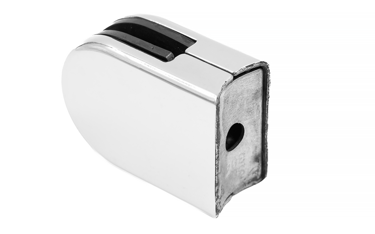 Стеклодержатель штампованный под стекло 8мм (4+4 мм), под стойку Ø38.1 мм 40х22х54, полированный (AISI 304) k538-2