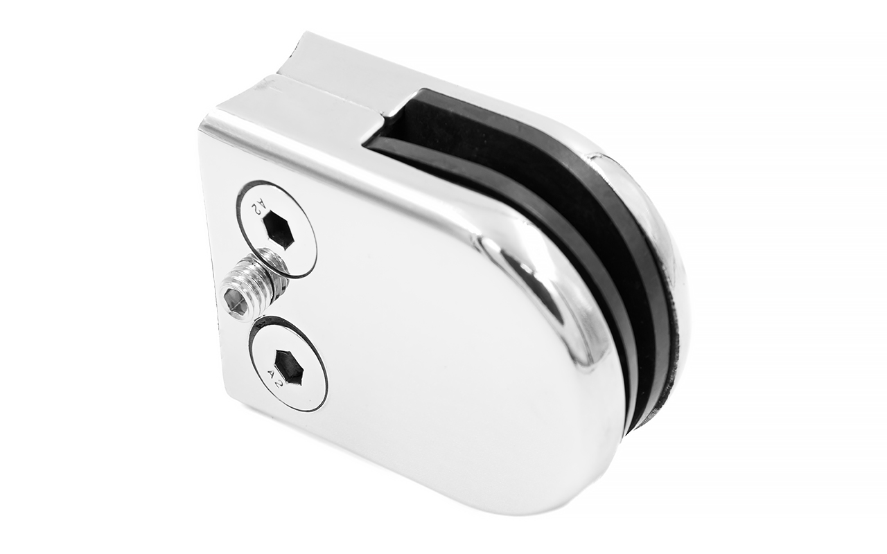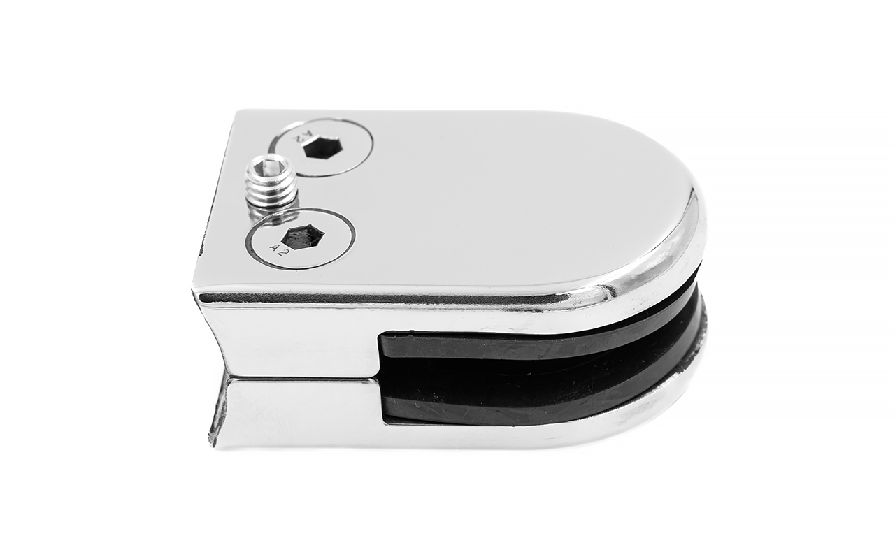 k538-10 стеклодержатель штампованный под стекло 10 мм, под стойку Ø38.1 мм (39х24х55), полированный, AISI 304