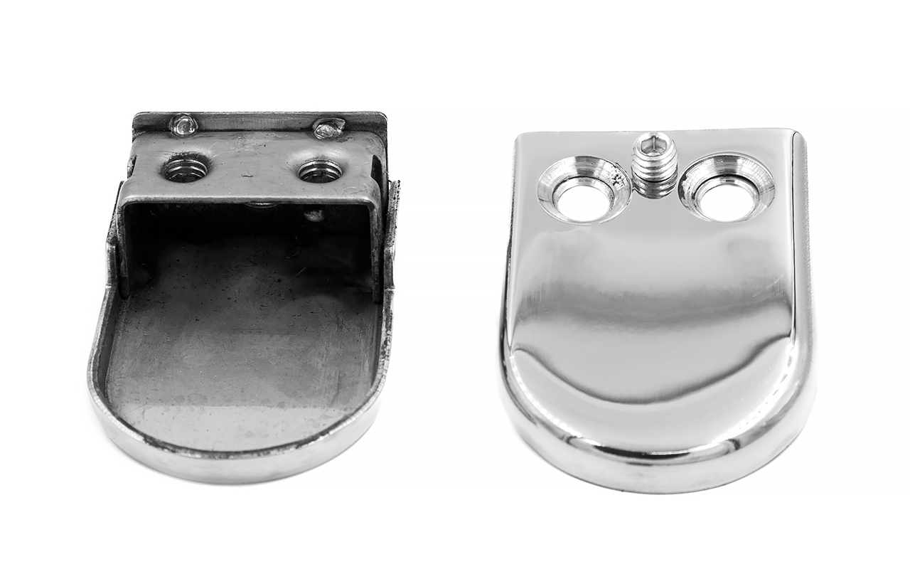 Стеклодержатель штампованный под стекло 10 мм (5+5 мм), под стойку Ø38.1 мм (39х24х55), полированный (AISI 304) k538-10
