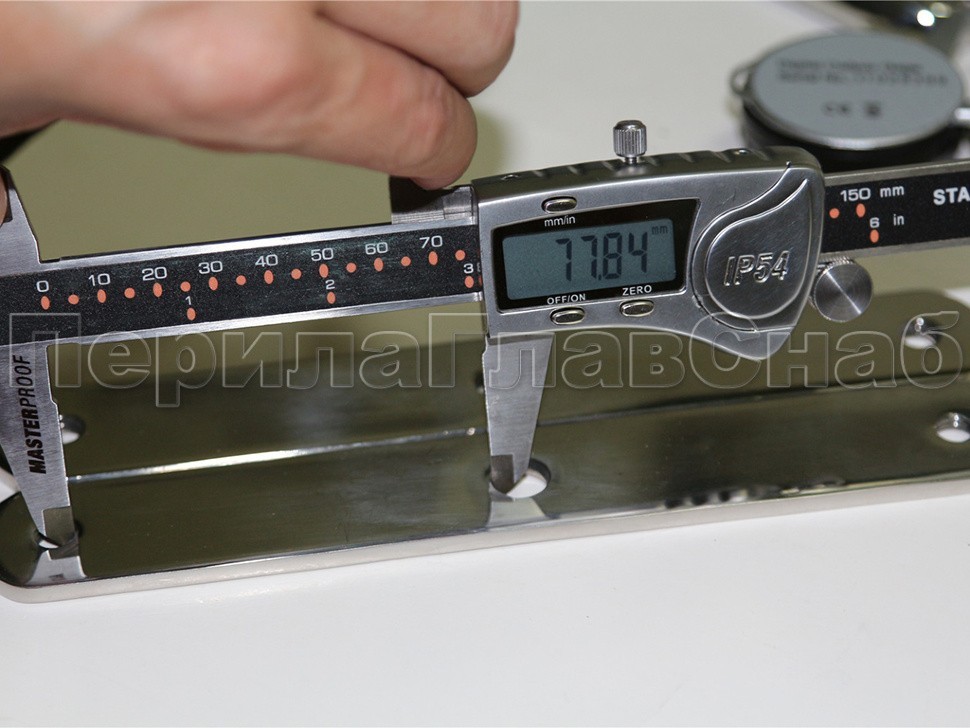 Стеклодержатель пластинчатый 3хМ8, по центрам 170х5 мм, полированный, шайбы 5 мм штамп., под стекло 6-12 мм, AISI 316 k023-8 купить в Екатеринбурге