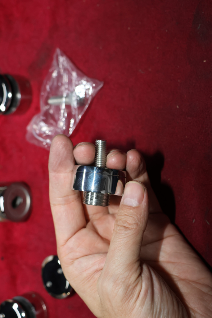Стеклодержатель Ø50х10х18, шпилька М16х205 мм, для стекла 8-40 мм, AISI (201), с возможностью регулировки выноса до 65 мм, для торцевого крепления стекла, полированный, литой k277-3 купить в Екатеринбурге