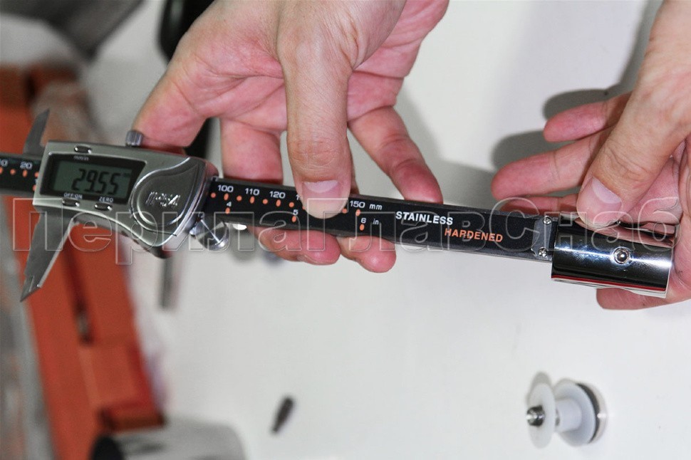 2 гайки Ø25 мм, в комплекте с втулкой  k503 и винтом М8, палец Ø18х106 мм. Благодаря наличию регулировки, отступ кромки стекла относительно оси стойки может доходить до 60 мм, а вынос составляет 30 мм