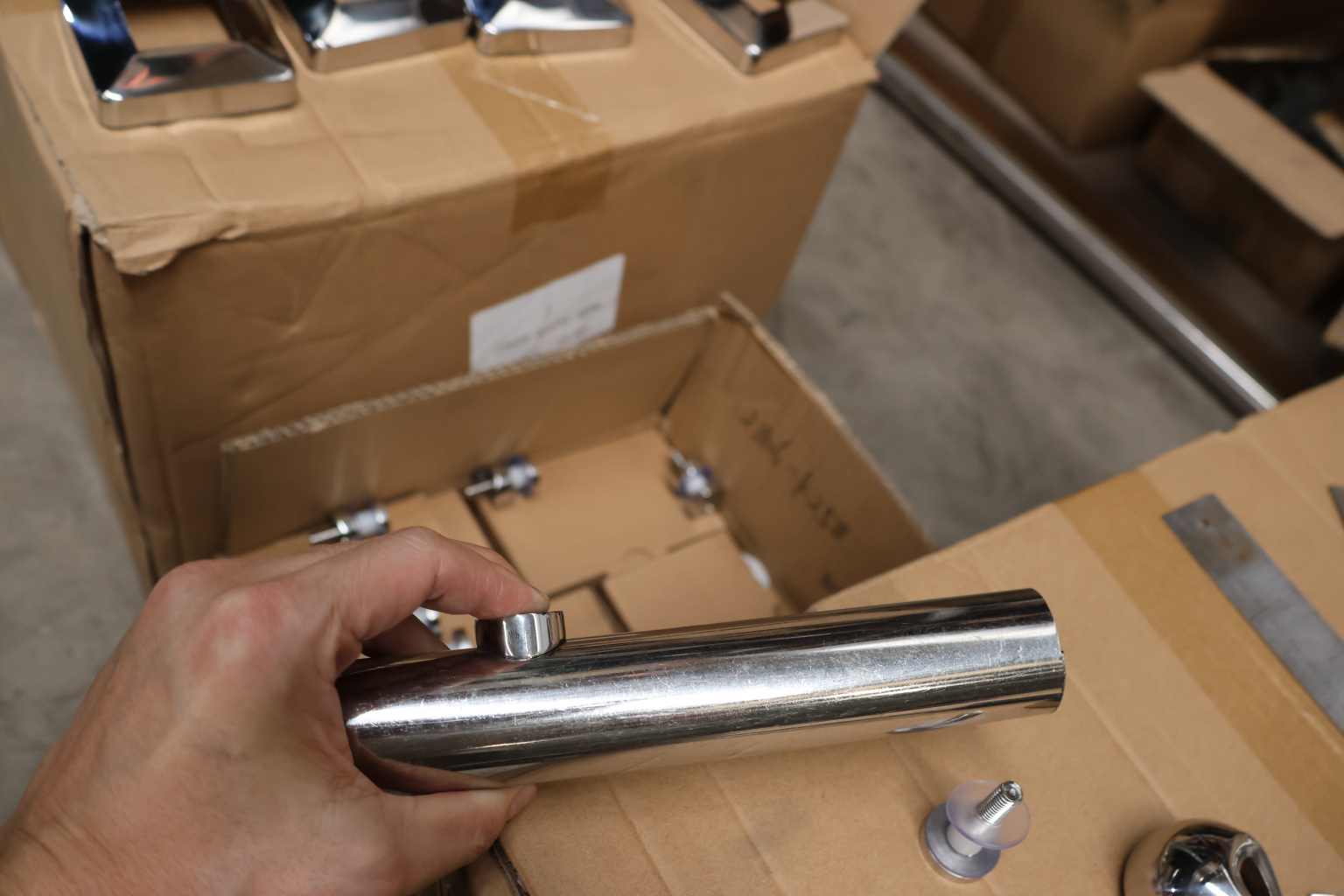 Ускоренная установка стекла в диапазоне толщин от 6 до 18 мм на круглой стойке из нержавеющей трубы Ø38.1 мм.