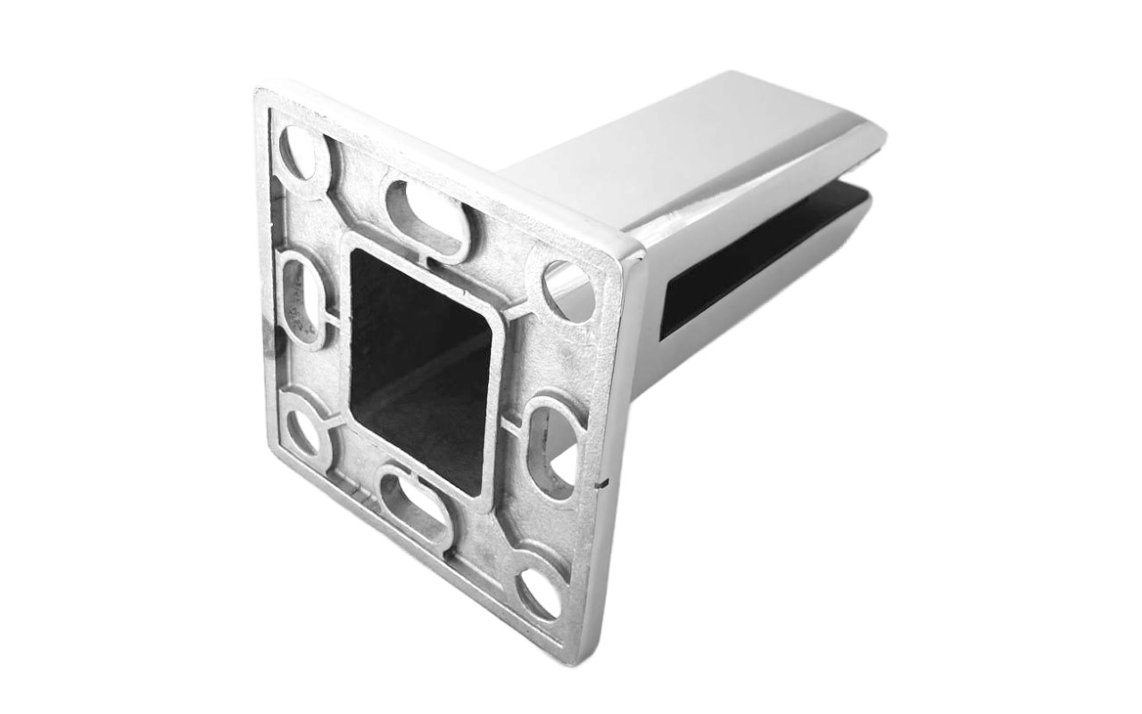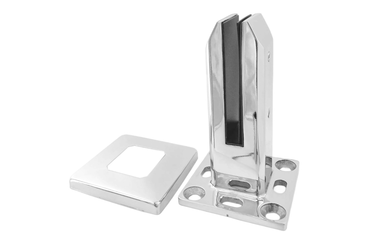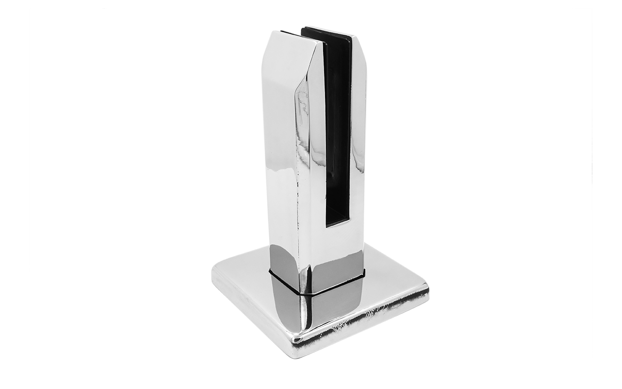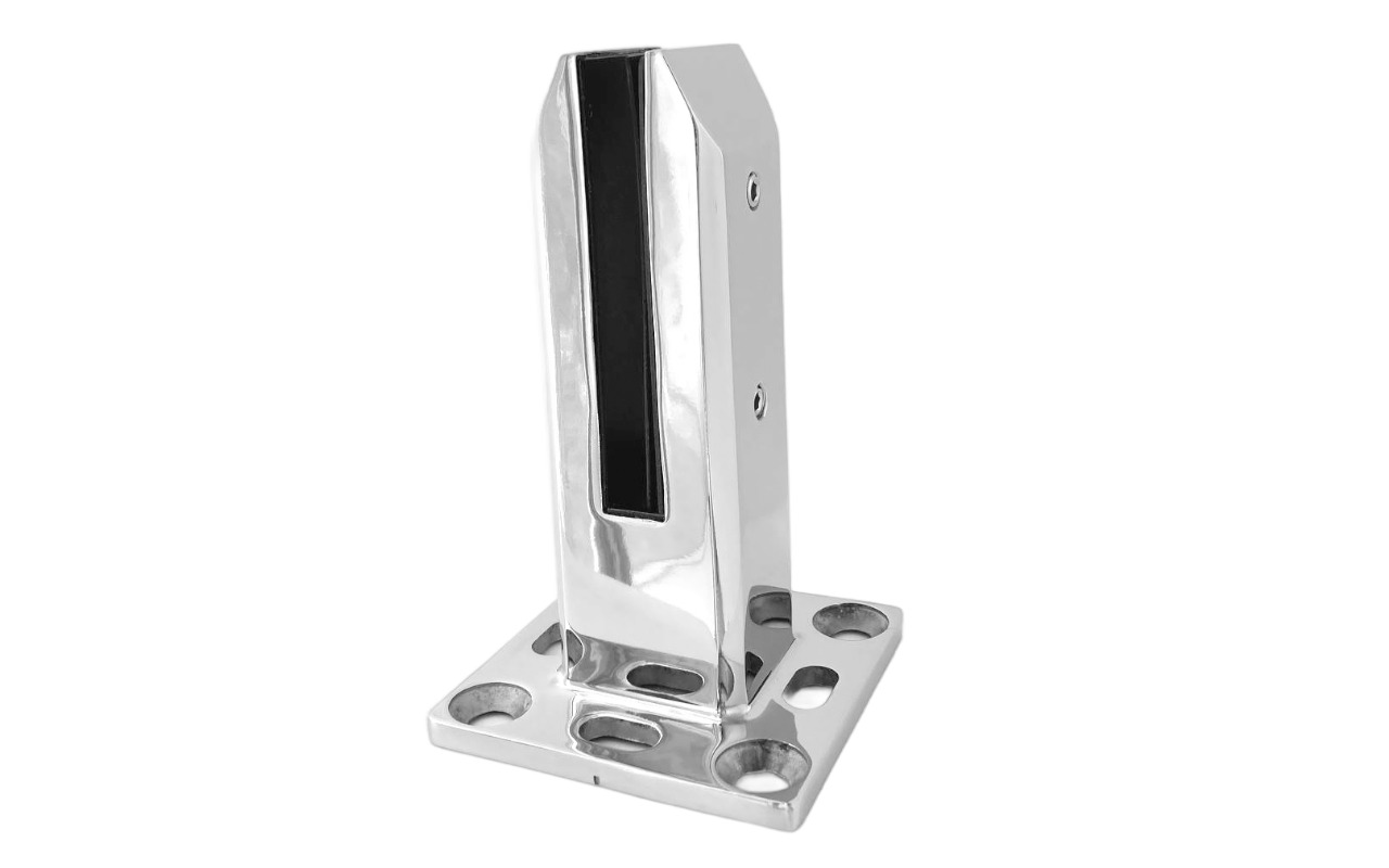 Стеклодержатель литой напольный квадратный зажимной, 45х50х160 мм, для стекла 10-12 мм, полированный, без сверления стекла (AISI 304). Так же вам понадобиться для крепежа потайной винт под шестигранник k601-19-120.