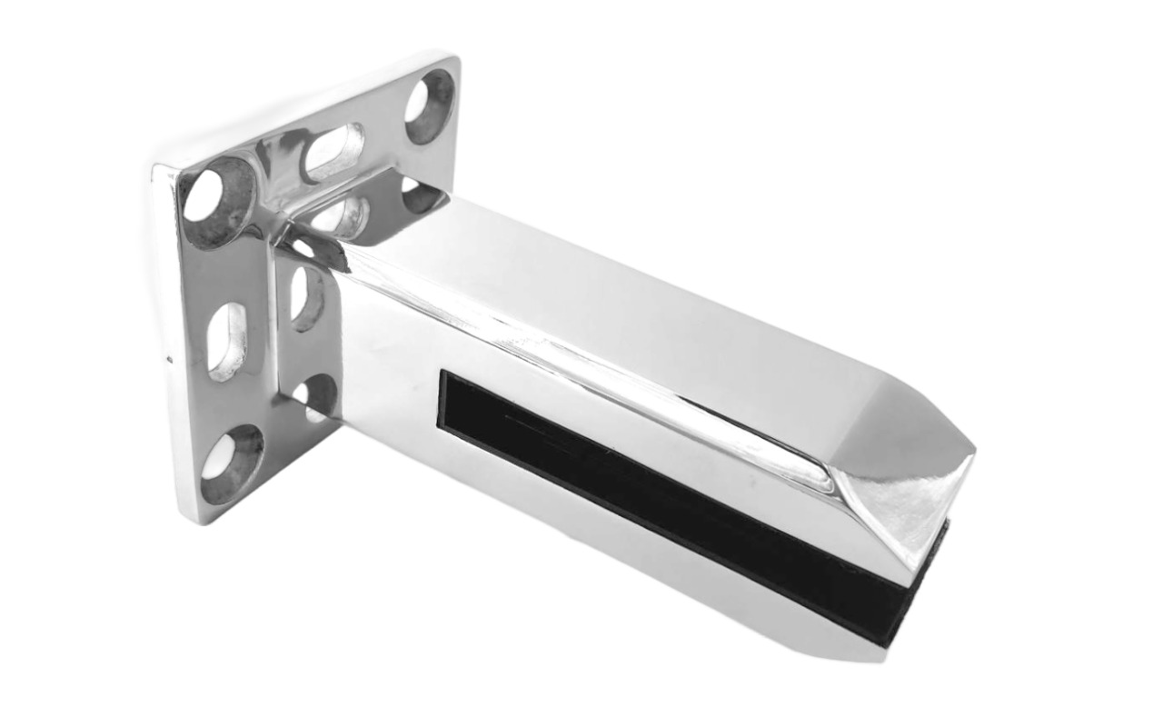 Стеклодержатель напольный 45х50х160 мм, для стекла 10-12 мм, литой, плоский, без сверления, нержавеющая сталь AISI 304, полированная k275-5