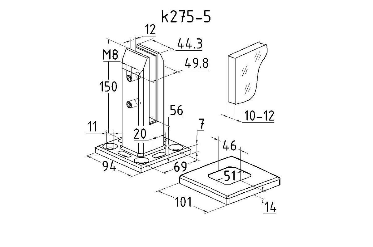 стеклодержатель предназначен для создания ограждений со стеклом 10-12 мм С-8085-2 у бассейнов и кровли.