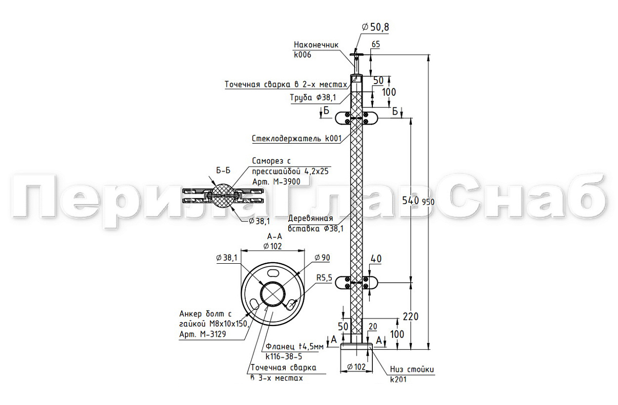 Готовые стойки – это экономия Вашего времени и денег. Приобретая готовую стойку Вы можете собрать ограждение сами, не привлекая монтажную бригаду и экономя денежные средства на монтаже. Стойка легко монтируется к полу благодаря треханкернуму фланцу с отверстиями под анкер-болт М8 ( , , ) или шпильку ( ; ) комплекте с хим анкером Ф-0799 или Ф-0800, а крепеж скрывает декоративная крышка идущая в комплекте стойки. Поручень из нержавеющей стали можно закрепить при помощи самореза ( , , ), либо при помощи заклепки ( ) и винта М6 ( М-3973) что на порядок эффективней, для крепления при помощи заклепок необходимо растачивать отверстие в ложементе. Если вы используете пластиковый ( , , , , , , ) или деревянный поручень, то его можно закрепить при помощи саморезов ( , М-3850, ). После покраски дубовой проставки подклеиваете клеем ( ф-1127, ф-1105). Стекло заказывается после установки стоек и снятия размеров. После того, как стекло готово к установке, при помощи шестигранника ( , ) разъединяете стеклодержатель, надеваете стекло и закручиваете обратно. Ограждение готово!