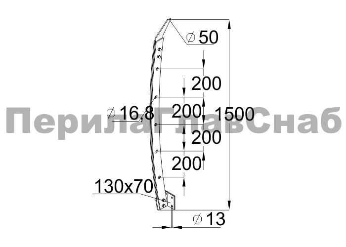 Стойка эксклюзивная с 5 отверстиями под ригель, крепление в торец, нерегулируемый ложемент (aisi 304)