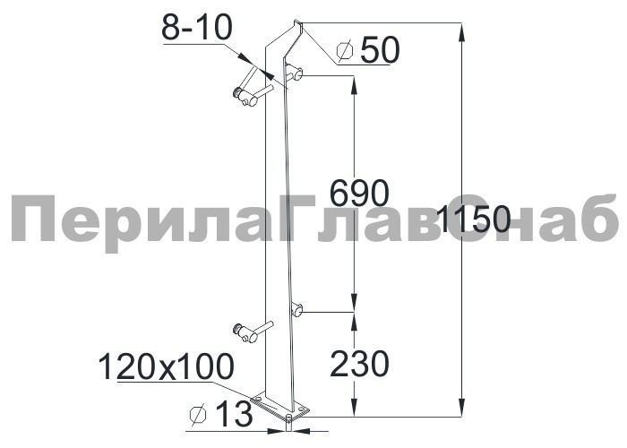 Готовая стойка Ø38,1х950 мм деревянная, со вставками из нержавеющей стали 2х100 мм с 2 стеклодержателями k741-2-L купить в Екатеринбурге
