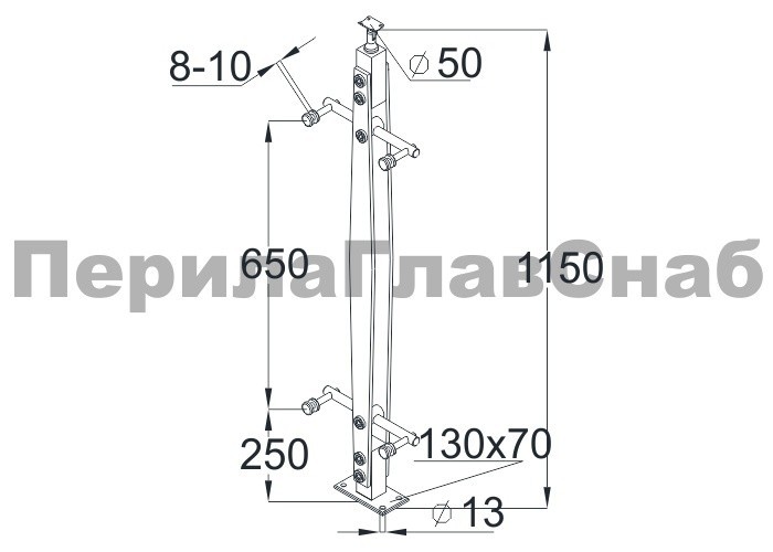 Готовая стойка Ø38,1х950 мм деревянная, со вставками из нержавеющей стали 2х100 мм с 4 стеклодержателями k741-3 купить в Екатеринбурге