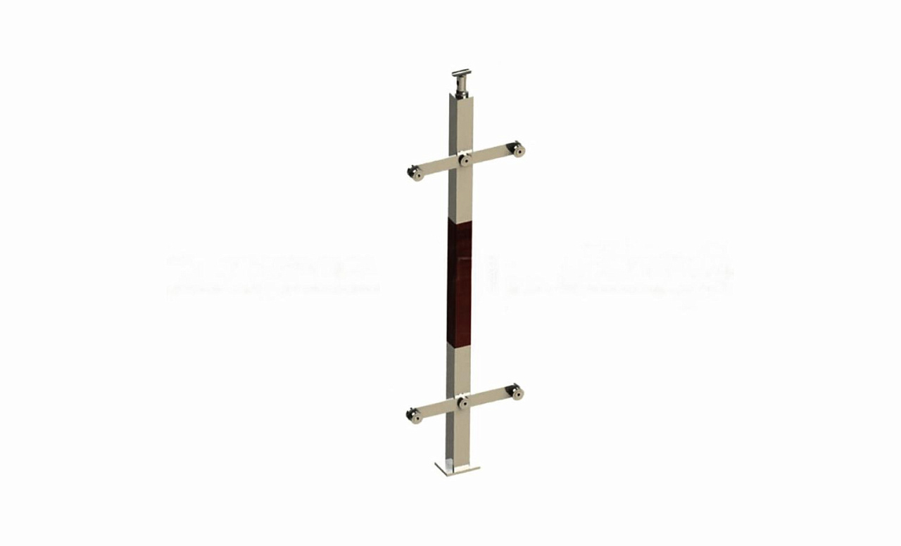 Готовая стойка Ø38,1х950 мм деревянная, со вставками из нержавеющей стали 2х100 мм с 4 стеклодержателями k741-3 купить в Екатеринбурге
