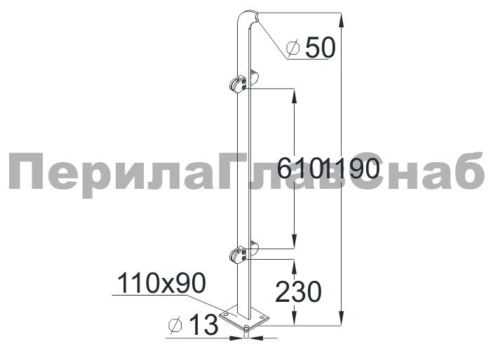 Готовая стойка Ø38,1х950 мм деревянная, со вставками из нержавеющей стали 2х100 мм с 2 стеклодержателями k741-2-L купить в Екатеринбурге