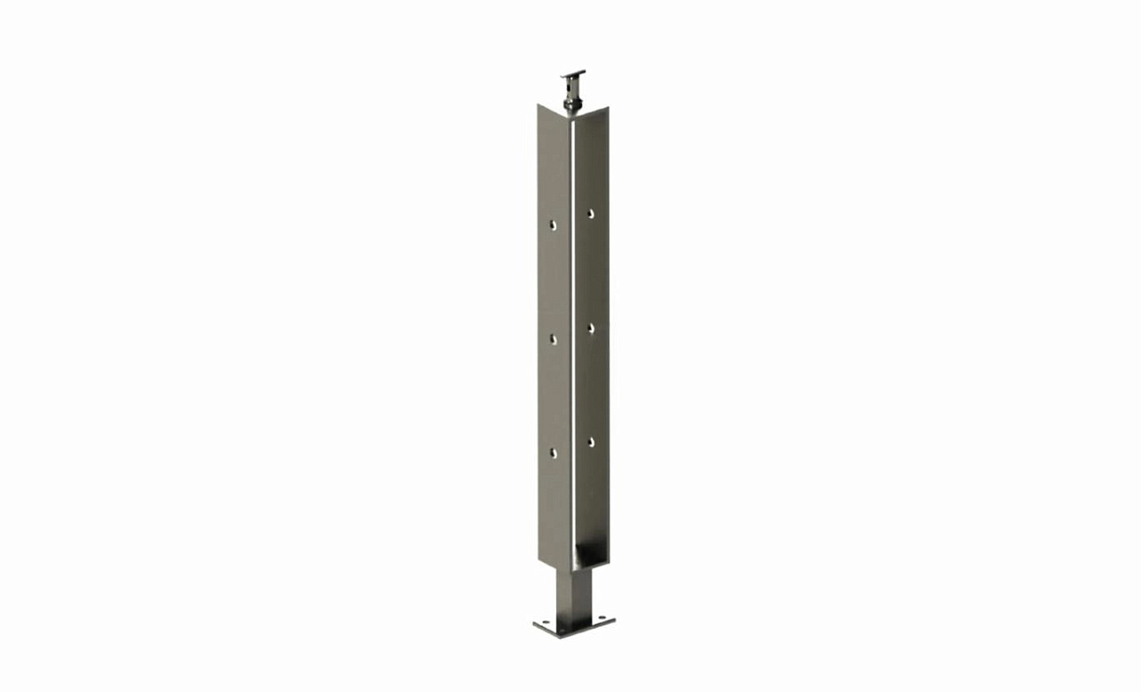 Стойка квадратная 40х40: 4 литых стеклодержателя, полированная, высота 950 мм (AISI 304) k746 купить в Екатеринбурге