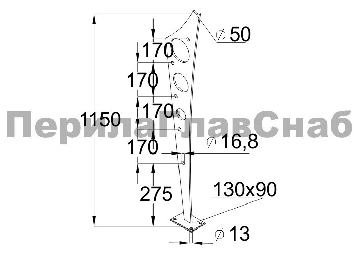 Стойка эксклюзивная с 5 отверстиями под ригель, крепление в пол, нерегулируемый ложемент (AISI 304) k765