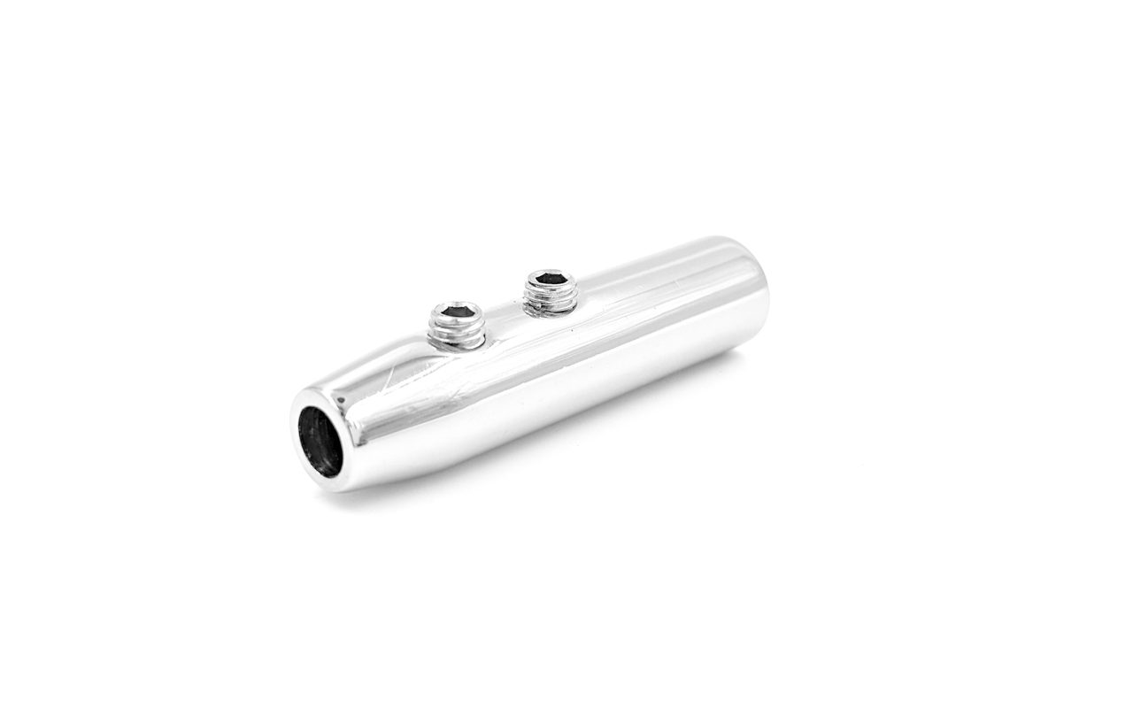 Держатель тросика Ø5 мм, короткий 50х12, прямой, под М8, полированный (два винта крепления троса)