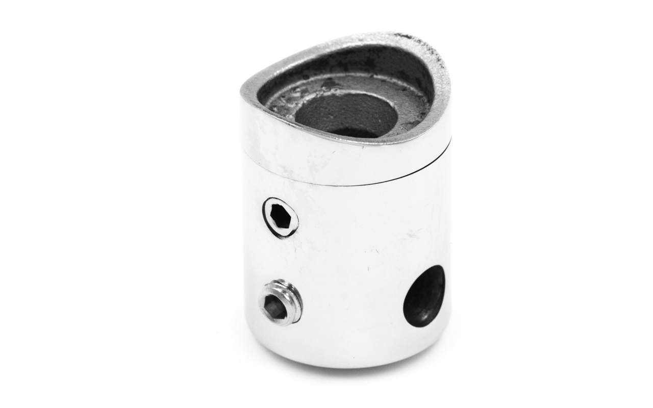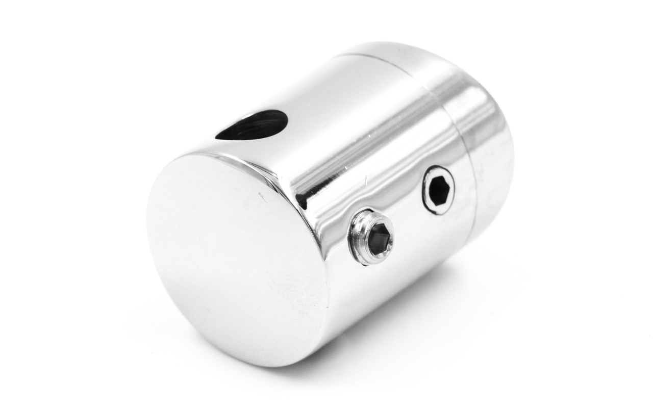 нержавеющий, проходной держатель тросика Ø6 мм, 22х30мм, в виде бочонка на круглую стойку Ø38.1- 42.4 мм, шлифованный (aisi 304)