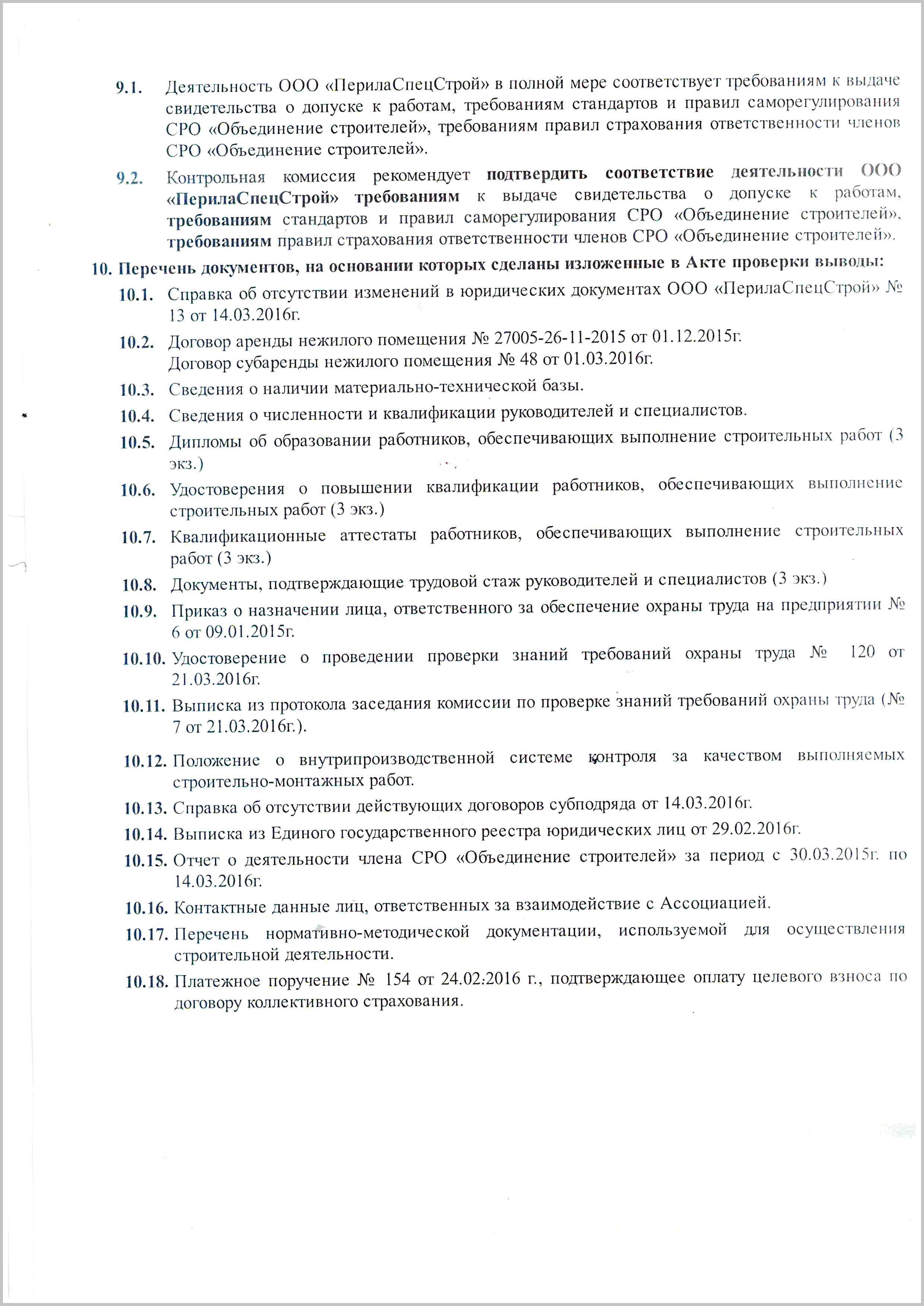 Дисциплинарная комиссия СРО "Объединение Строителей" провела очередную плановую проверку деятельности компании "ПерилаГлавСнаб" (31 марта 2016) на соответствие: