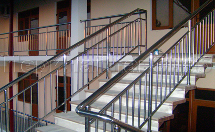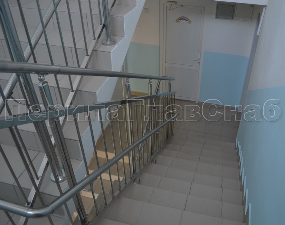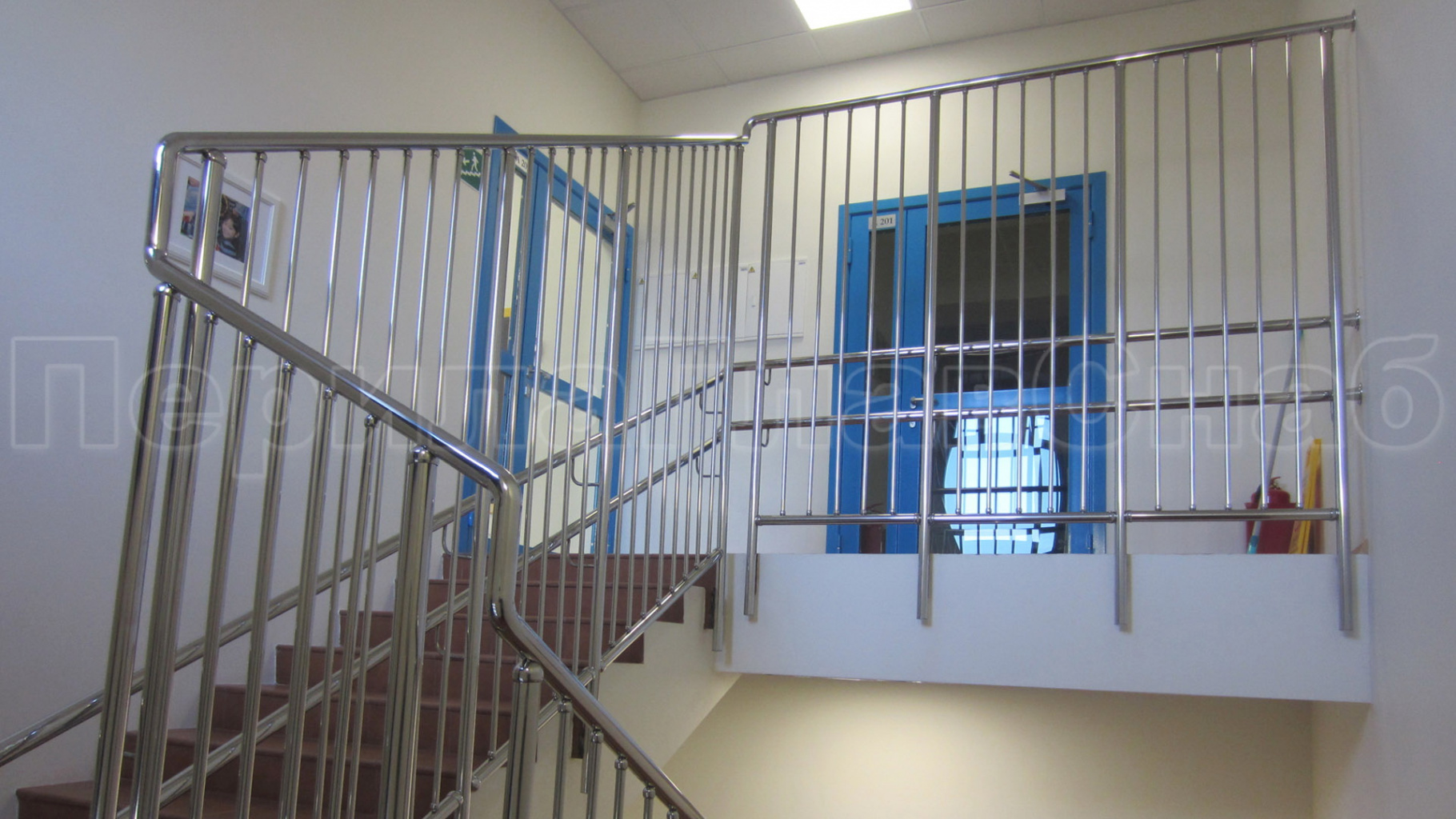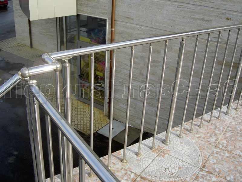 Записаться на встречу Нержавеющие ограждения для школ и детских садов с вертикальным заполнением “Частокол” - вариант №1 для крыльца