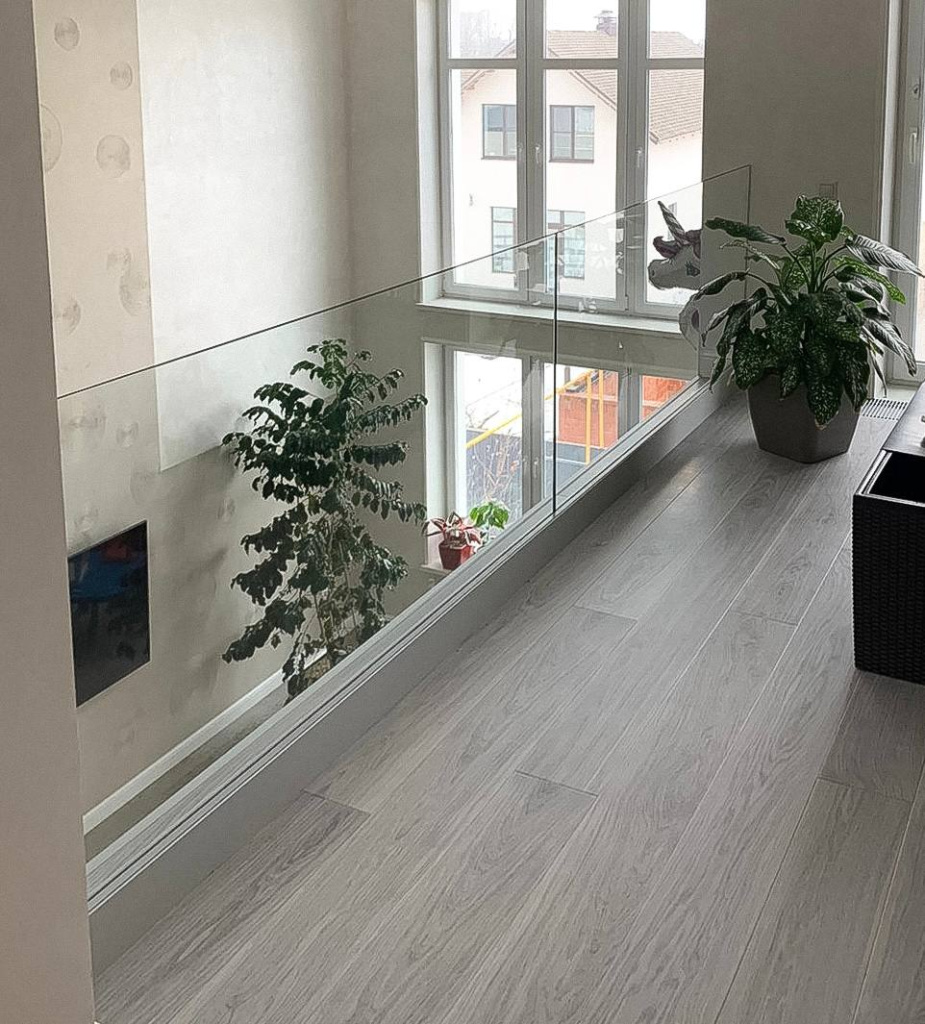 Профиль сверленый: от края 150 мм, следующие отверстия с шагом 300 мм. Длина алюминиевого профиля 6 метров. Профиль сертифицирован и имеет протокол испытаний. В данном проекте профиль используется с серой резиной.