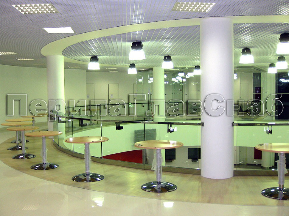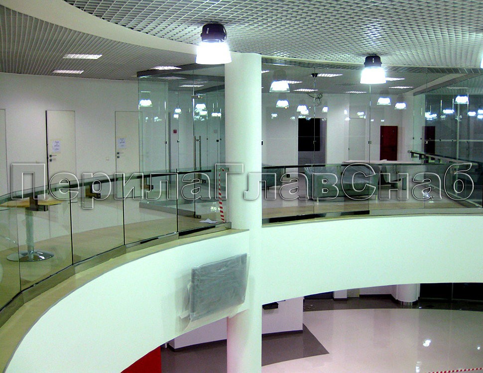 Кроме того, на том же объекте специально для заказчика были разработаны и установлены системы цельностеклянных офисных перегородок, витрины и стеклянных дверей на профильной фурнитуре типа «Классика».
