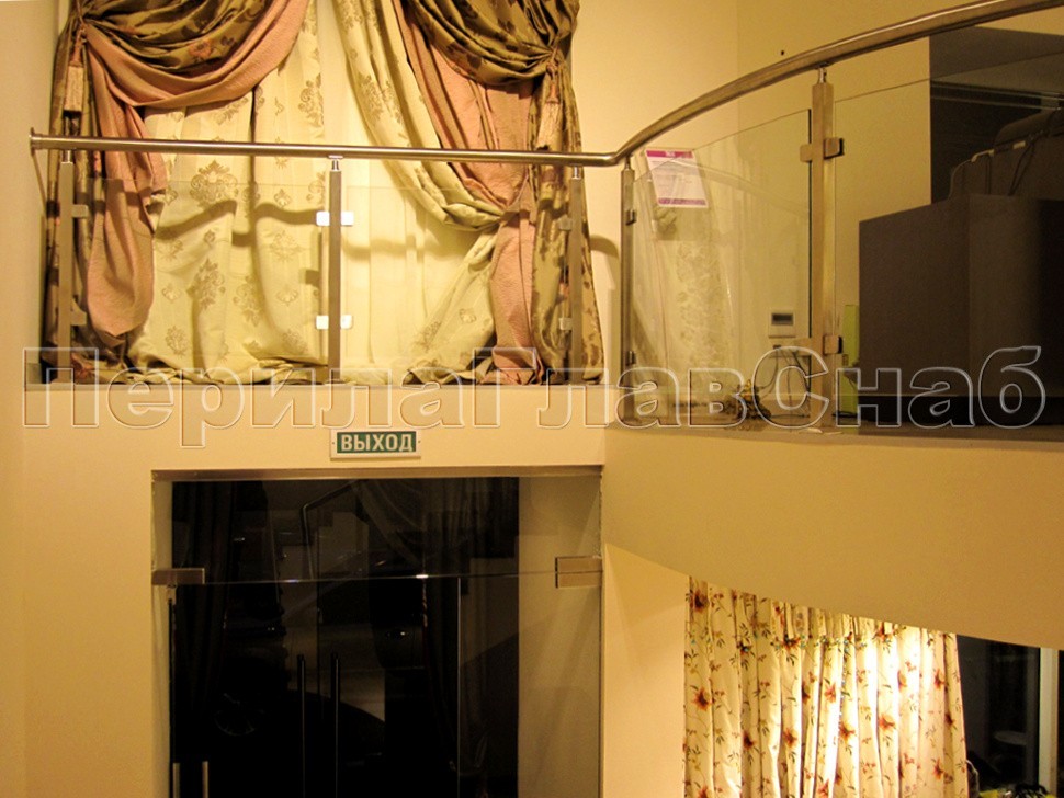 В одном из крупнейших салонов трикотажа столицы было установлено несколько типов ограждений со стеклом и лестниц, облицованных деревянными ступенями.