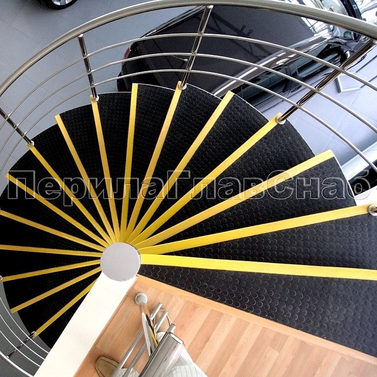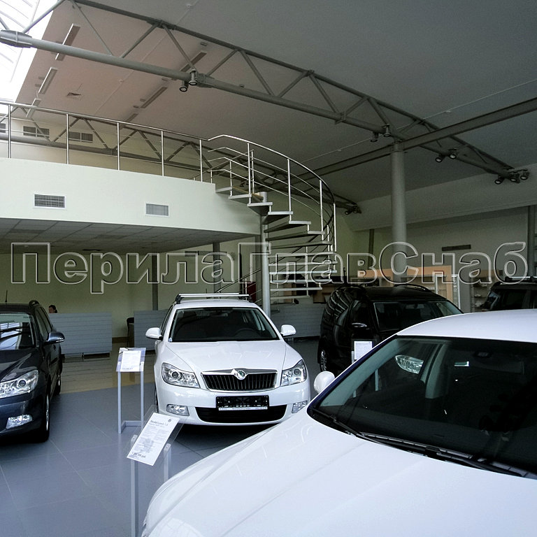 В здании автосалона всемирно известной марки «Skoda» была установлена винтовая лестница из нержавеющей стали на больцах с облицовкой каждой ступени антискользящим покрытием.