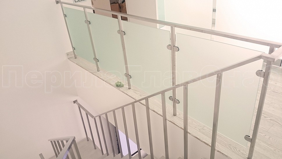 Ограждения из шлифованной нержавеющей стали. Высотой 950 мм и стойками 20х20 мм, крепление сверху через деревянную ступень заказчика и основания ступени металла 3 мм, устанавливаются в каждую ступень, на прямых участках не более 300 мм друг от друга; низ стойки декоративная крышка, поручень 40х20 мм, окончание поручня заглушка, поручень завязан. Крепление нержавеющих элементов ограждения между собой точечная аргонно-дуговая сварка, длина швов 2 мм, с последующей зачисткой и полировкой.