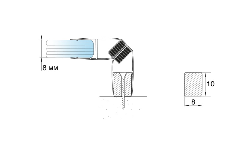 Уплотнитель для стекла 8мм, 90°, стекло-стекло 2,2 м.длина уса 25 мм t215y-8 купить в Екатеринбурге