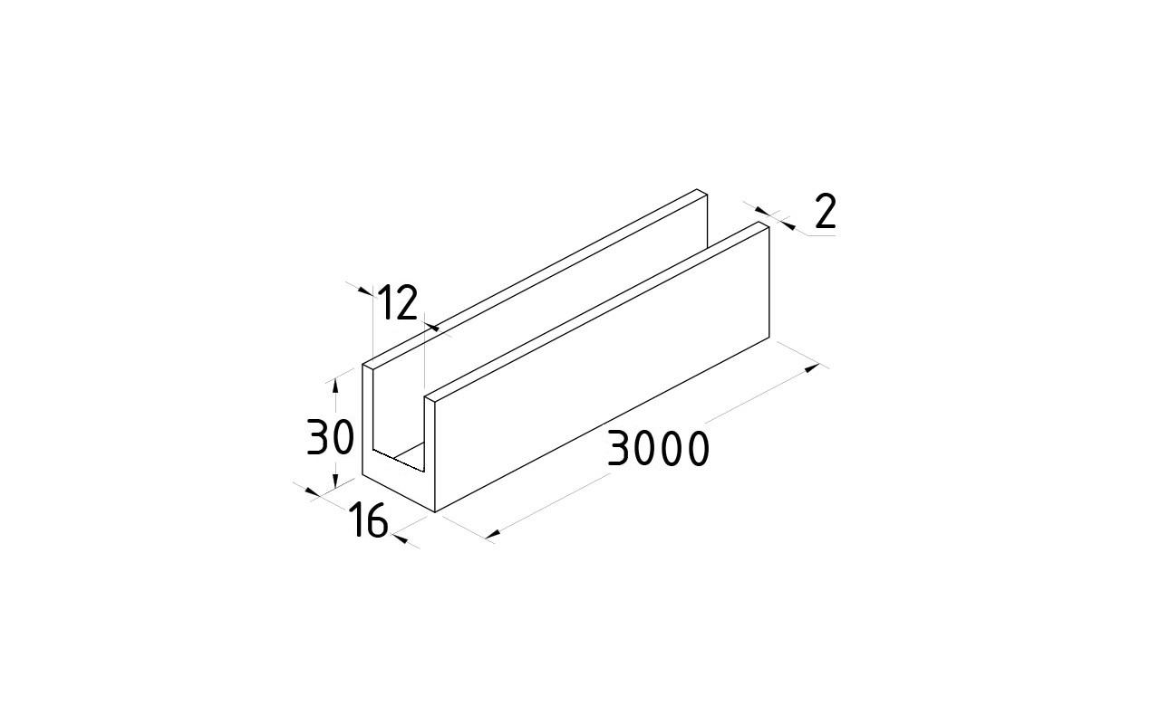 П-образный профиль 30x16,3 L=3000, химическая полировка