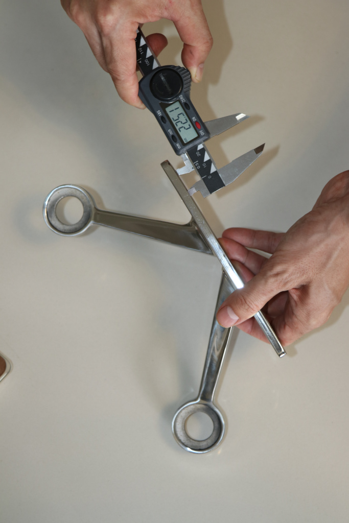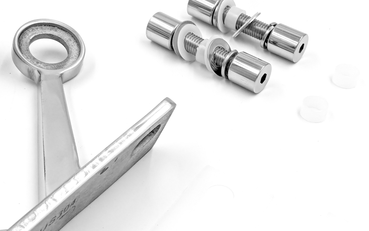 X-спайдер для установки на стеклянное ребро, марка стали- AISI 304. Минимальный размер составляет 14, а максимальный — 24. Однако, если убрать обычные гайки, то размер можно сделать больше.