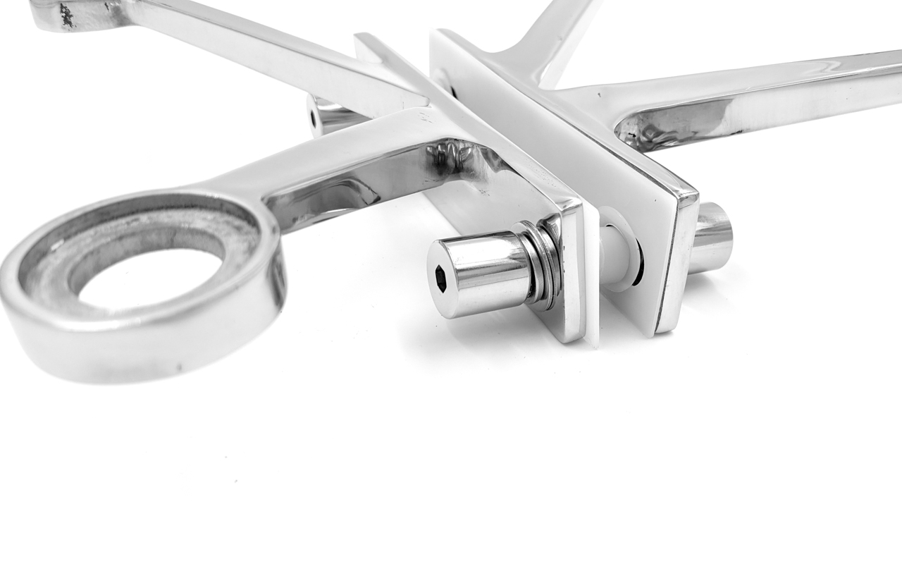 Спайдер – крепеж для вертикального остекления, фасадного остекления, который крепко соединяет между собой стеклянные панели и крепит стекло к несущему металлическому каркасу. Металлические крестовины «паук» изготавливаются из высокопрочной легированной стали, благодаря которой изделие сохраняет свои физические и механические свойства при воздействии внешних разнообразных факторов. Этот вид крепежа используется для безрамного остекления, что позволяет сделать остекление не зависящие от бокового крепежа и сохранит внешний вид вашего фасада. Так же Спайдер идеален в случае необходимости ремонта, он позволяет легко демонтировать стекло и заменить его с минимальными трудозатратами.