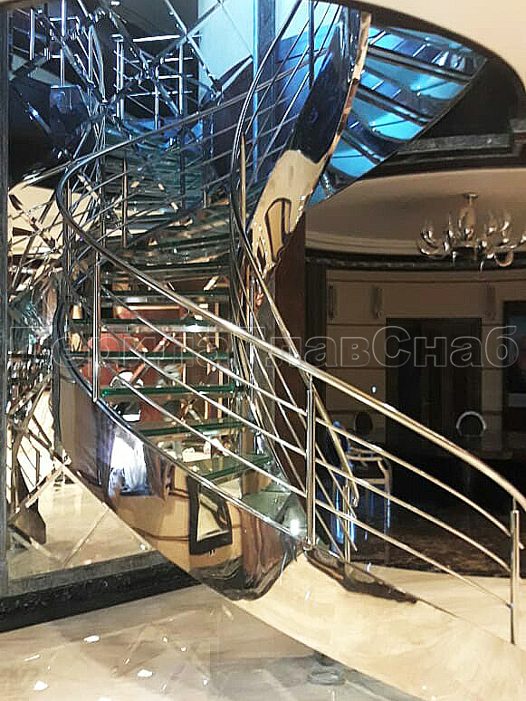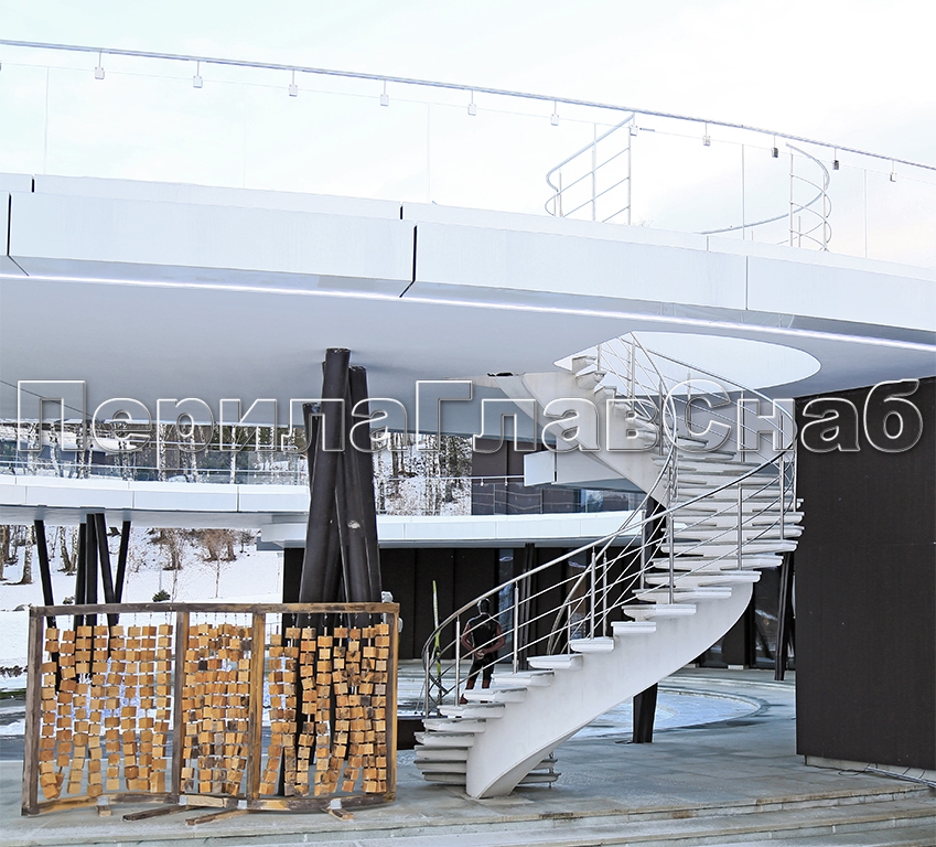 Стеклянные ограждения винтовой лестницы и баллюстрады в Екатеринбурге. Готовые проекты ПерилаГлавСнаб