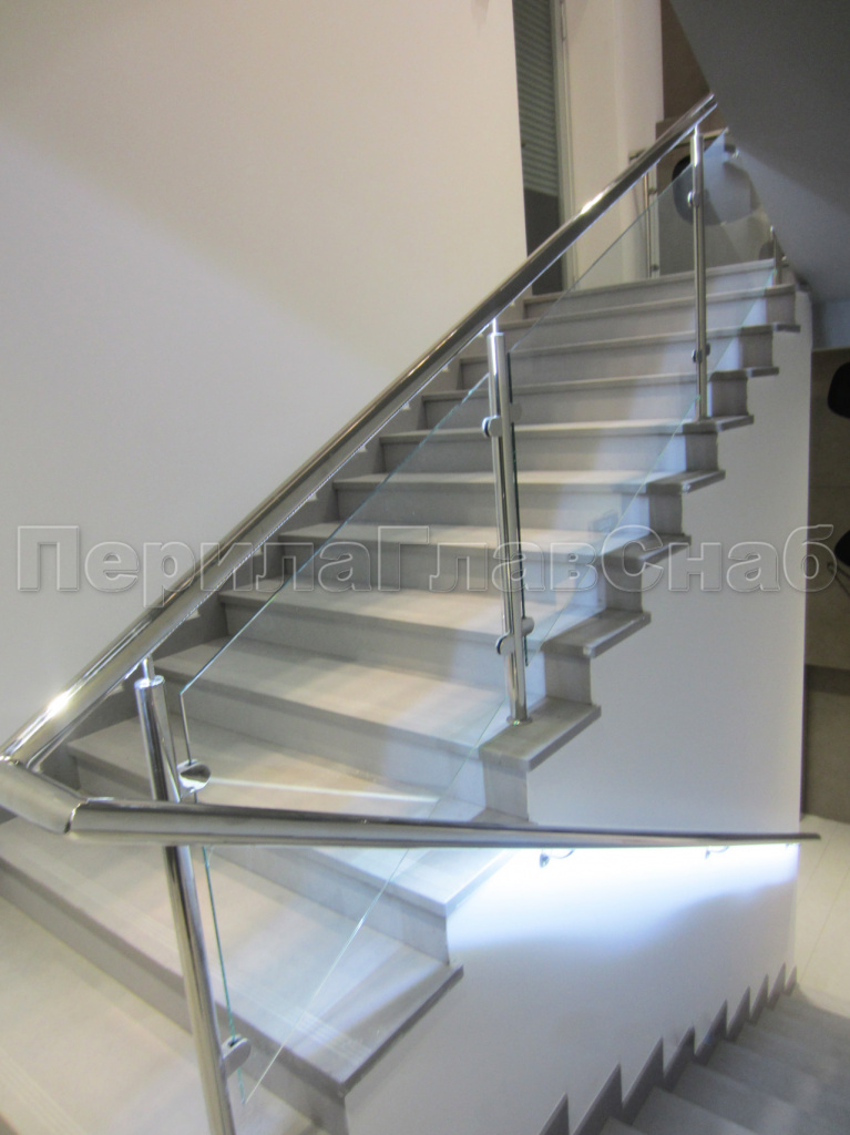 Ограждения лестниц на несущем стекле с подсветкой в Екатеринбурге. Готовые проекты ПерилаГлавСнаб - фото 1 Ограждения лестниц на несущем стекле с подсветкой в Екатеринбурге. Готовые проекты ПерилаГлавСнаб - фото 2